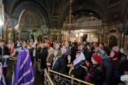 În dimineața zilei, Ierarhul a fost întâmpinat de soborul slujitorilor și de credincioșii prezenți.