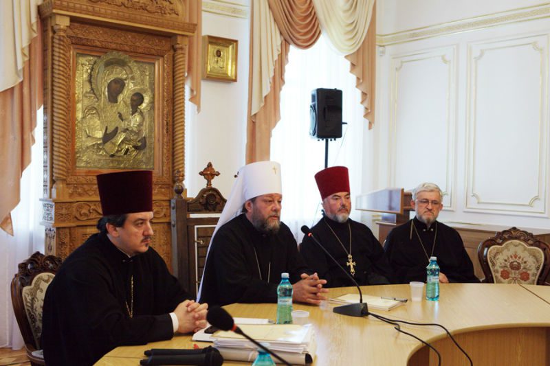 După şedinţă slujitorii împreună cu Mitropolitul Vladimir s-au deplasat la Catedrala Mitropolitană, închinându-se chipului Maicii Domnului prin icoana făcătoare de minuni “de Liubeci”, săvârşind un Te Deum.