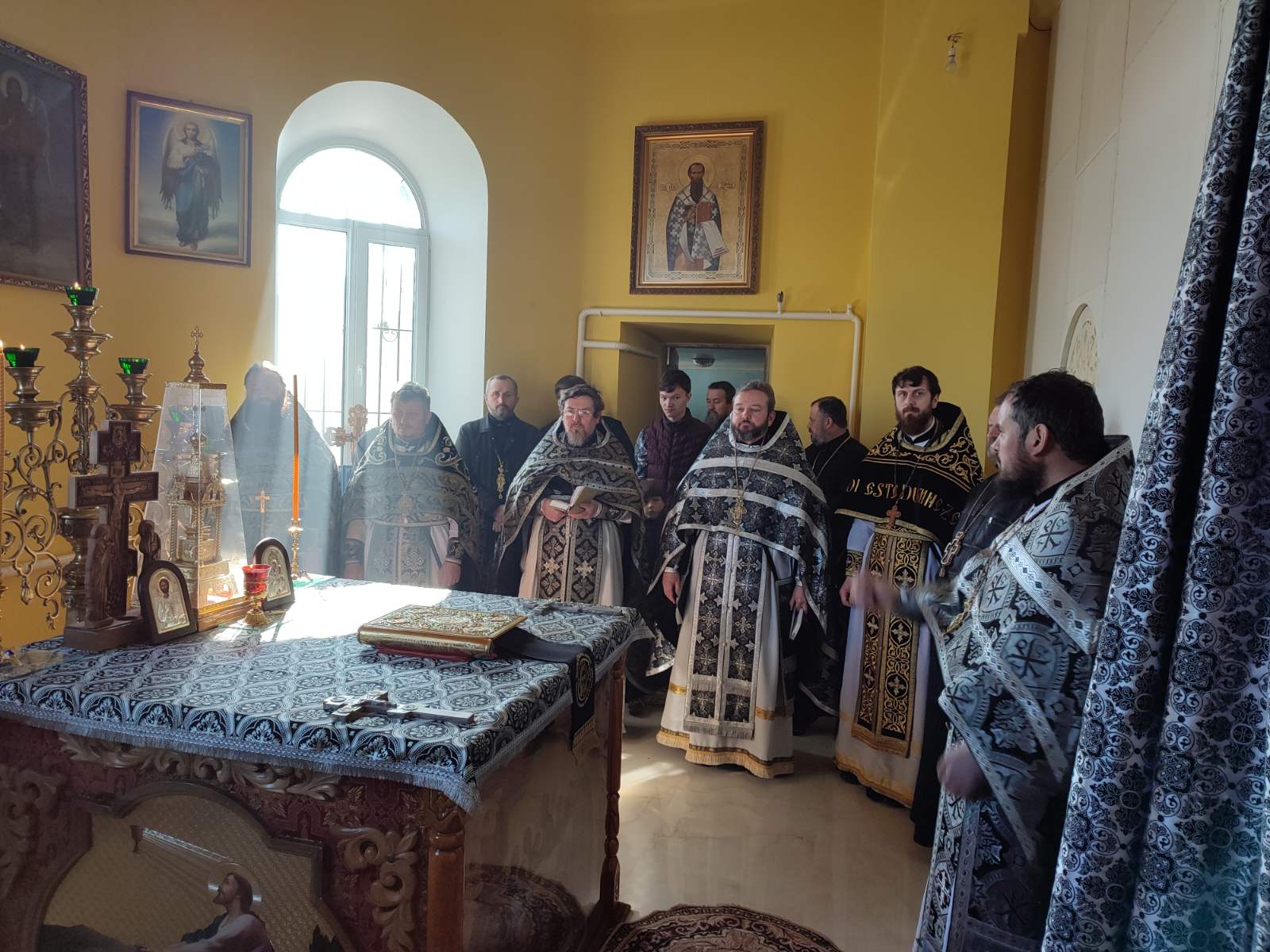 În această zi, când Biserica cinstește pe Sfântul Cuvios Gherasim de la Iordan, a fost săvârşită Sfânta și Dumnezeiasca Liturghie a Darurilor mai înainte Sfințite de către prot. mitr. Marian Boldescu, protopopul acestei circumscripții, dimpreună cu un sobor de preoți și Taina Sfintei Mărturisiri a preoților, de către duhovnicul protopopiatului, prot. mitr. Mihail Ili.