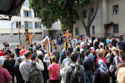 Un moment impresionat la pelerinajului a fost popasul în curtea Mitropoliei, unde după săvârșirea unui Tedeum, pelerinii au primit binecuvântare de la ÎPS Mitropolit Vladimir. Totodată Vlădica a avut grijă să aprovizioneze pelerinii cu apă, biscuiți și dulciuri mai ales pentru micii pelerini.
