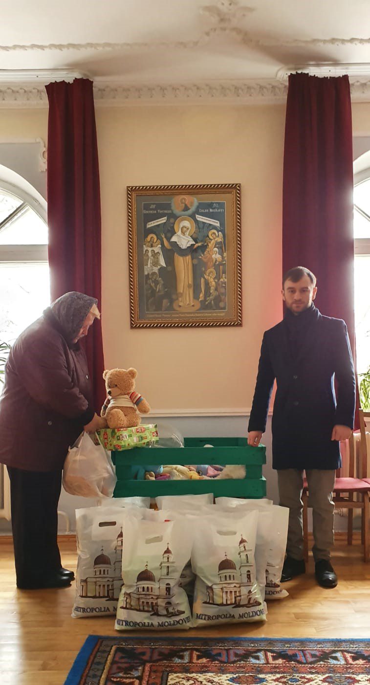 Cu această ocazie, au fost distribuite pachete alimentare și daruri primelor familii beneficiare în cadrul campaniei din acest an, prin intermediului tinerilor voluntari ai Centrului Social-Misionar „Icoana Maicii Domnului Bucuria tuturor celor necăjiți” de la Catedrala „Înălțarea Domnului” din Capitală.