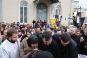 După Sfânta Liturghie a fost săvârșit Prohodul nou-adormitului rob a lui Dumnezeu Protoiereului Ioan, după care cortegiul funerar, în dangăte de clopot şi cu cântarea „Sfinte Dumnezeule…” a înconjurat sfântul lăcaş.