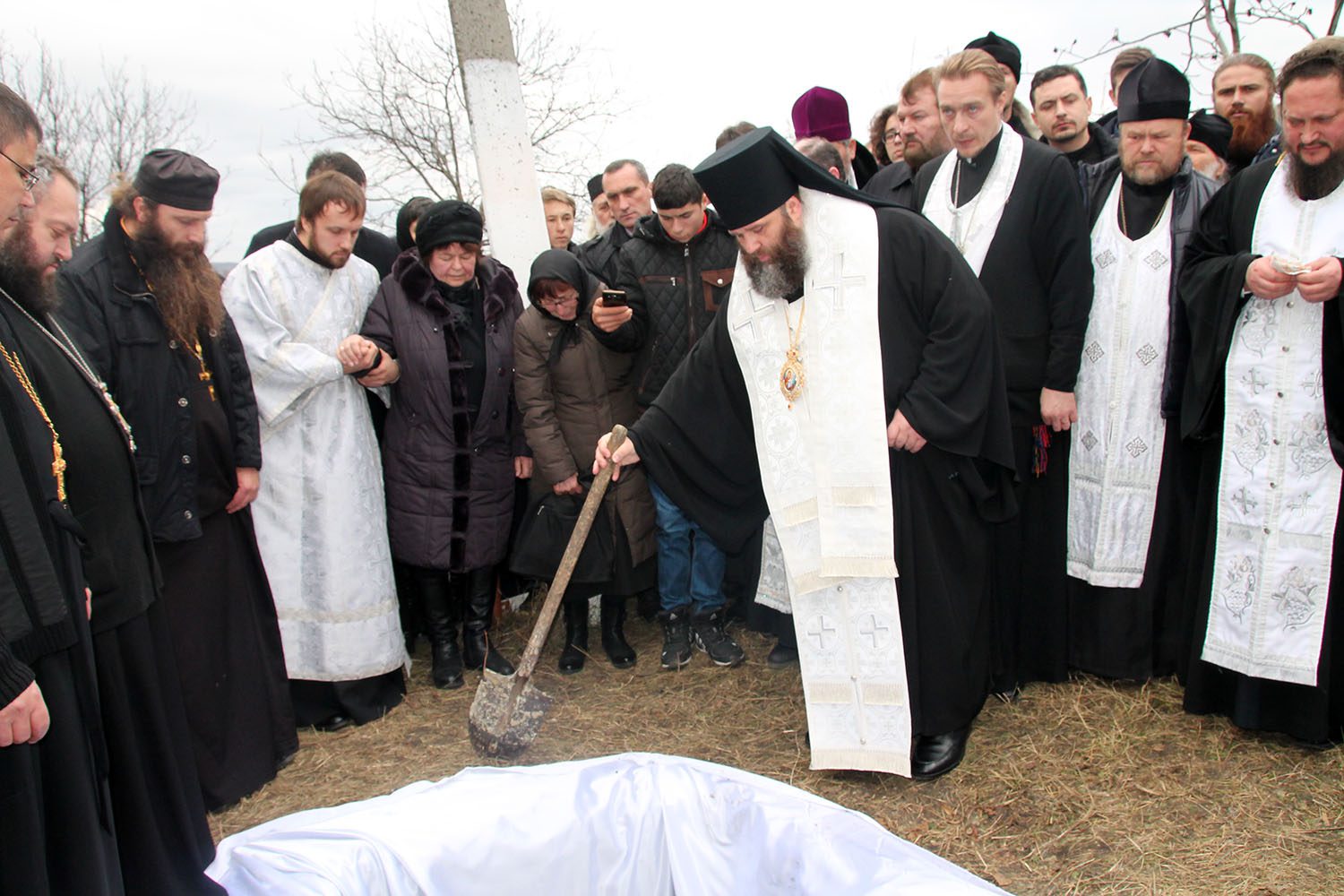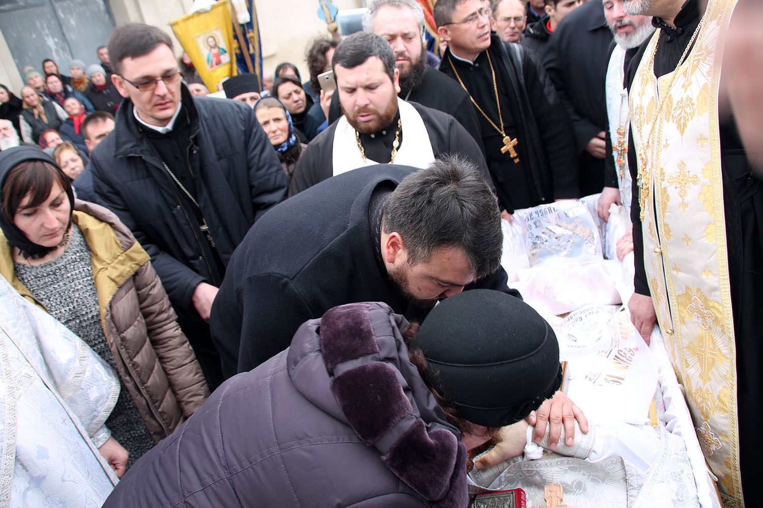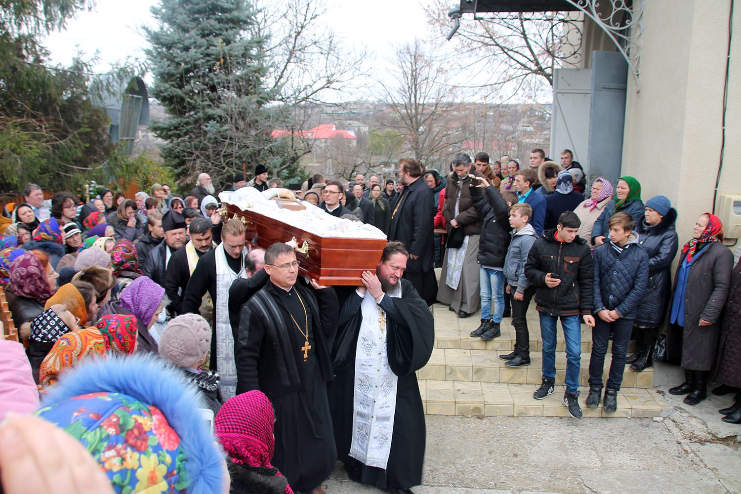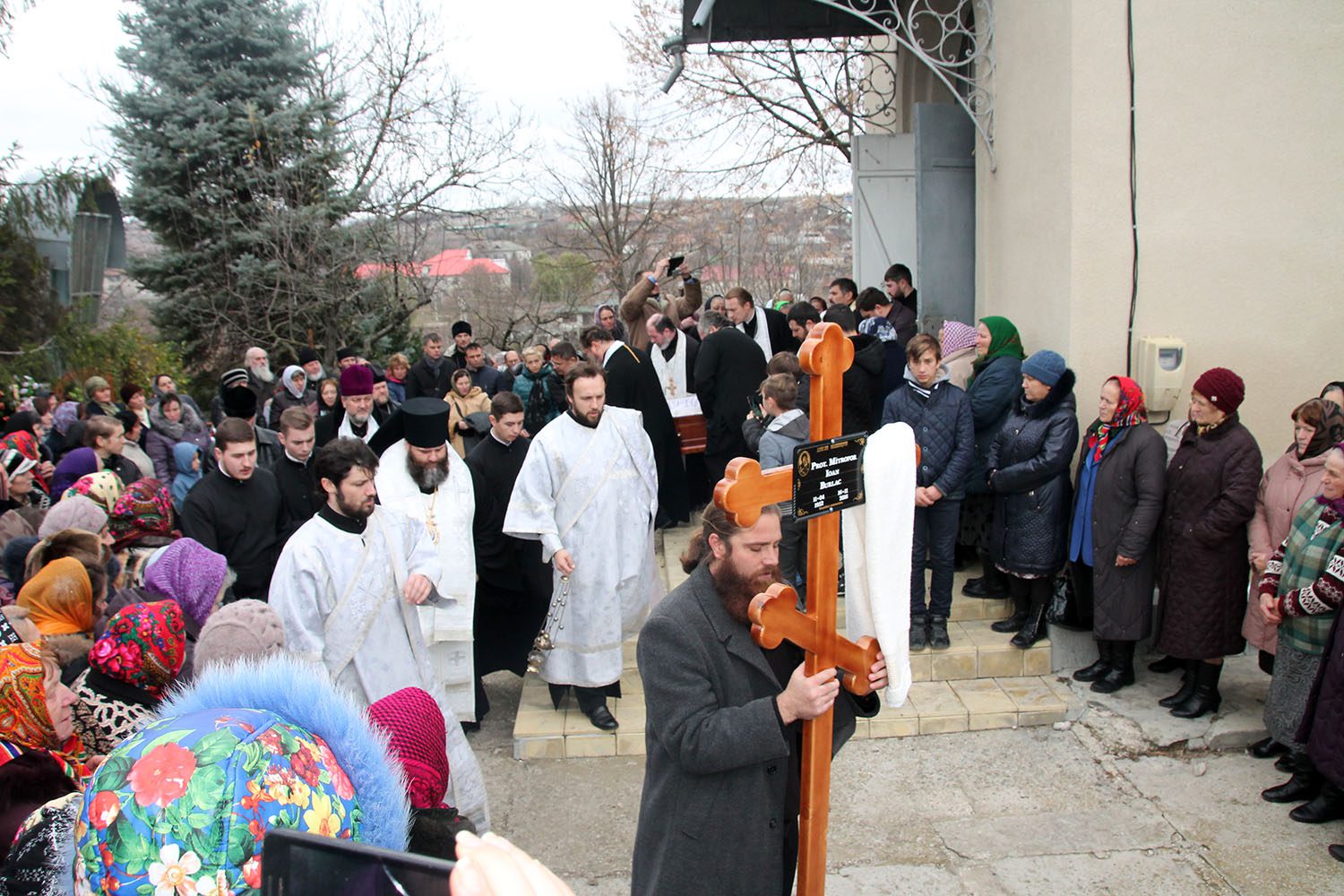 După Sfânta Liturghie a fost săvârșit Prohodul nou-adormitului rob a lui Dumnezeu Protoiereului Ioan, după care cortegiul funerar, în dangăte de clopot şi cu cântarea „Sfinte Dumnezeule…” a înconjurat sfântul lăcaş.
