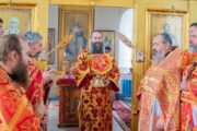 Înaltpreasfinției Sale i-au coliturghisit prot. mitr. Constantin Portărescu, protopopul raionului Ștefan Vodă, împreună cu un sobor de preoți și diaconi.