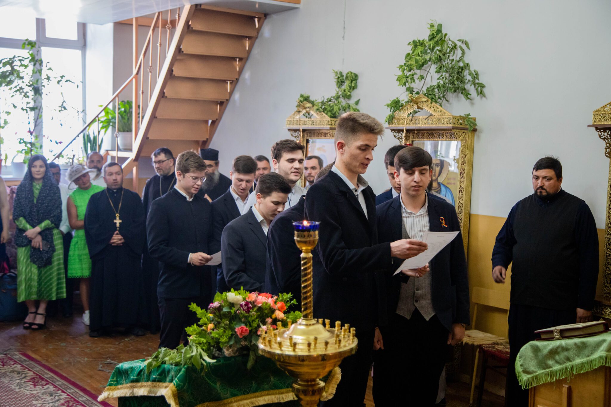 În dimineaţa zilei, tinerii teologi absolvenți, au participat la Sfânta Liturghie şi slujba de te-deum în capela studențească „Sfinții Trei Ierarhi” din incinta instituției.