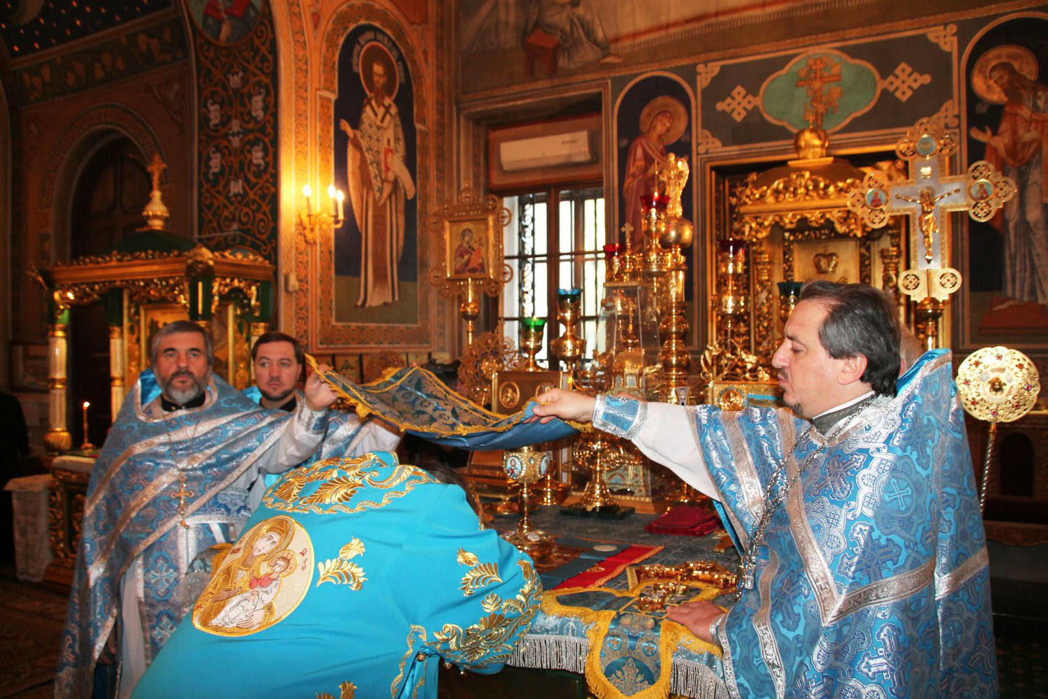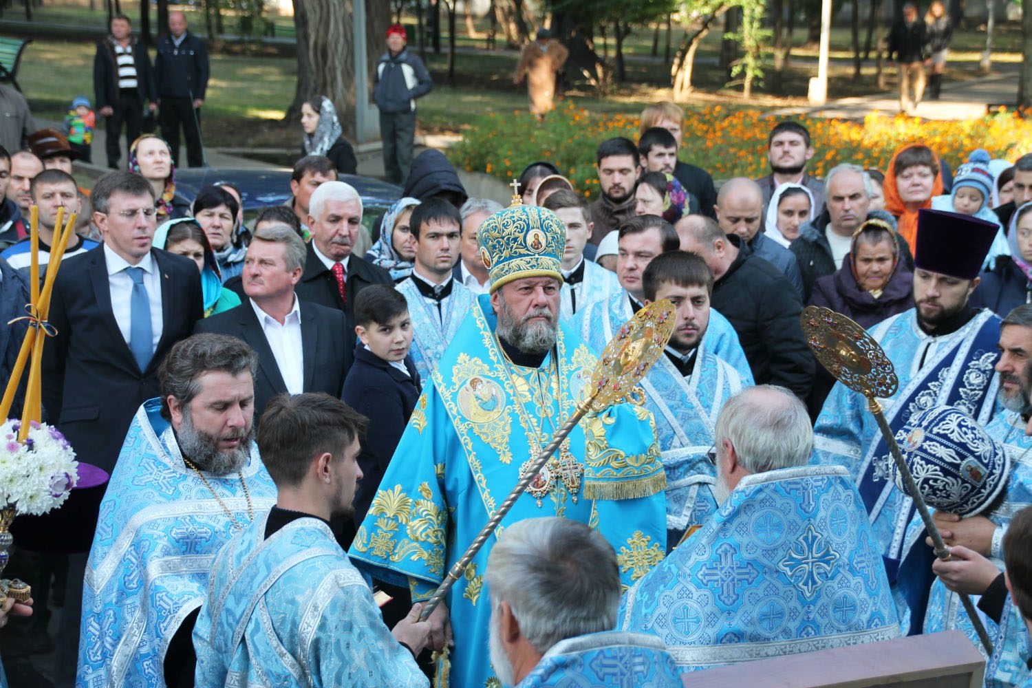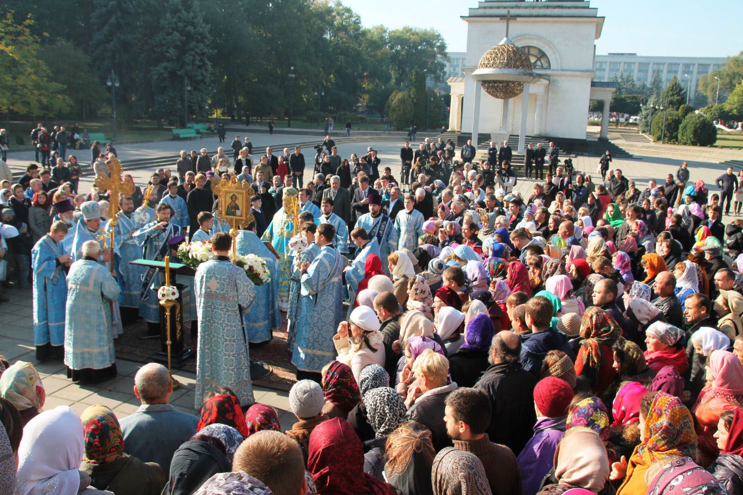 La data de 14 octombrie de ”Acoperământul Maicii Domnului”, ÎPS Vladimir, Mitropolit al Chişinăului, şi al Întregii Moldove, însoţit de un sobor de preoţi şi diaconi, a oficiat Sfânta şi Dumnezeiască Liturghie la Catedrala ”Naşterea Domnului” din Chişinău.