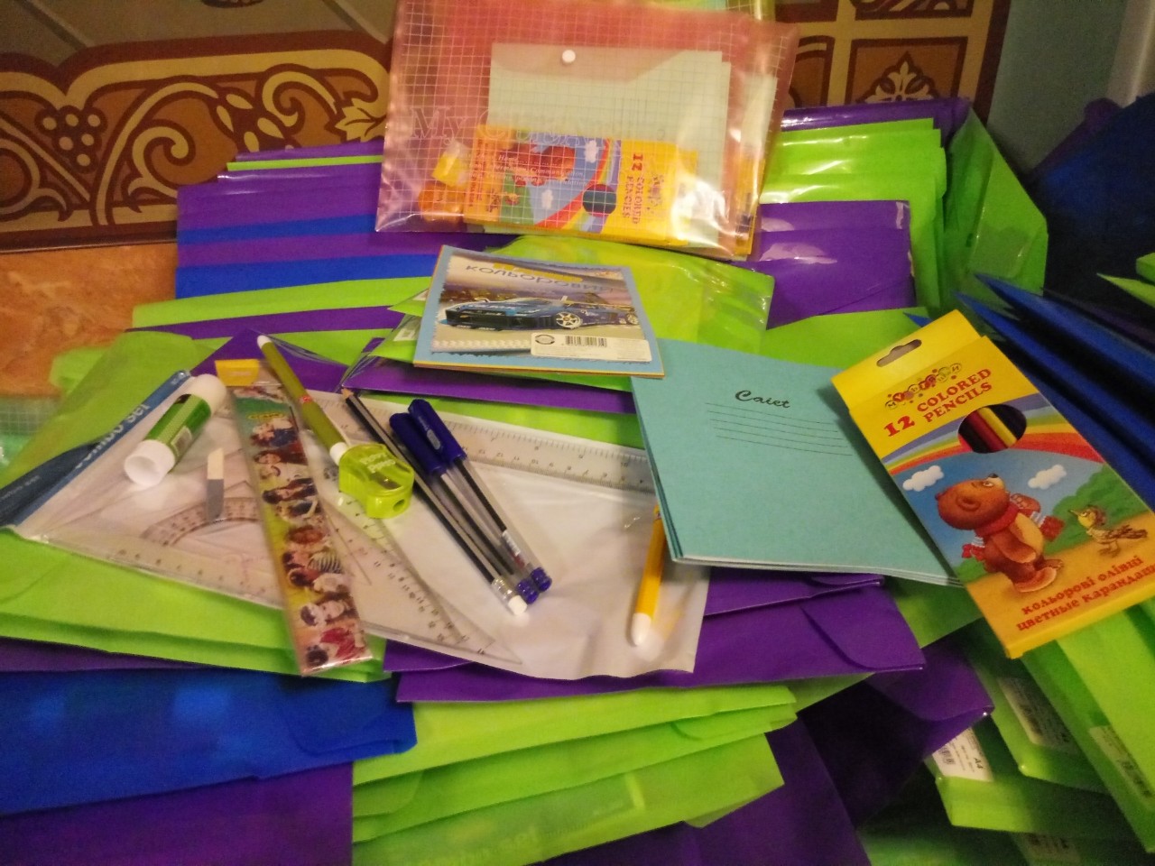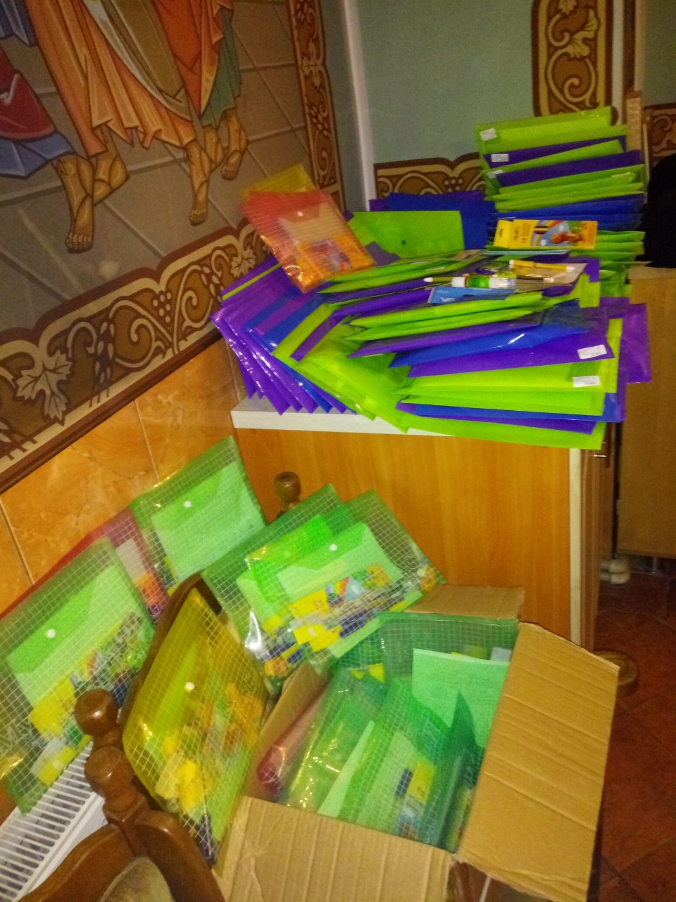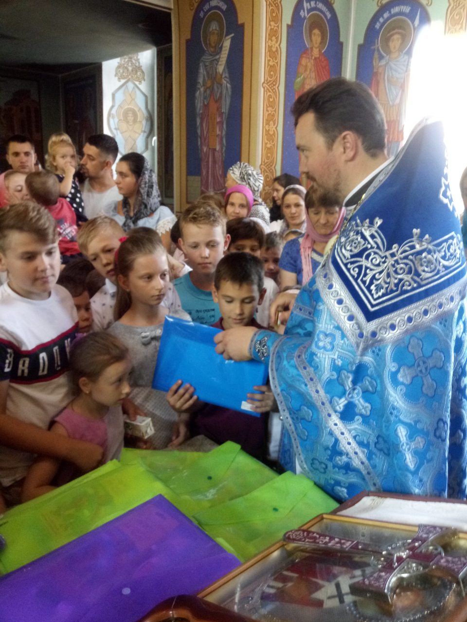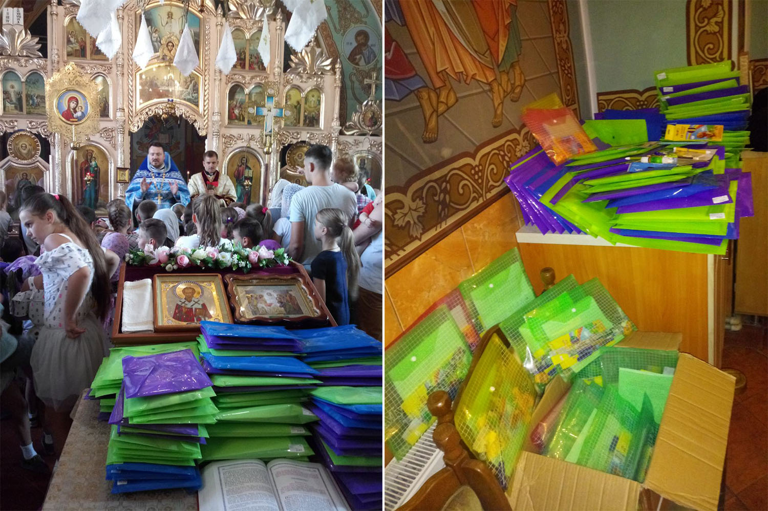 „Astfel, după săvârșirea Sfintei Liturghii au fost dăruite pentru peste 100 de elevi din localitate, seturi cu rechizite școlare: caiete și alte lucruri folositoare pentru orele școlare: creioane colorate, pixuri, rigle, penare ș.a.
