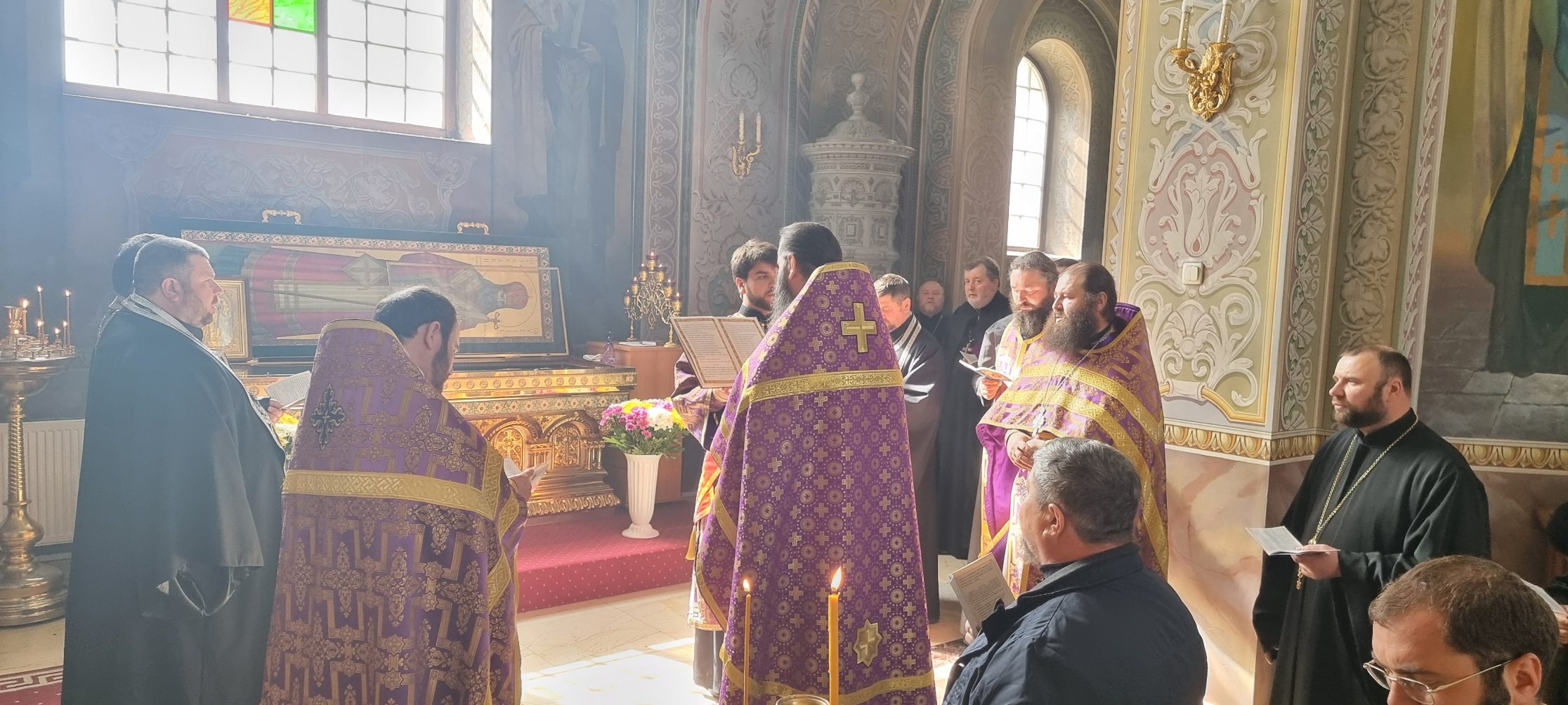 În dimineața zilei, a fost oficiată Sfânta Liturghie a Darurilor mai Înainte Sfințite, după care preoții împreună cu enoriașii prezenți au oficiat și Acatistul Sfântului Ierarh Gavriil.