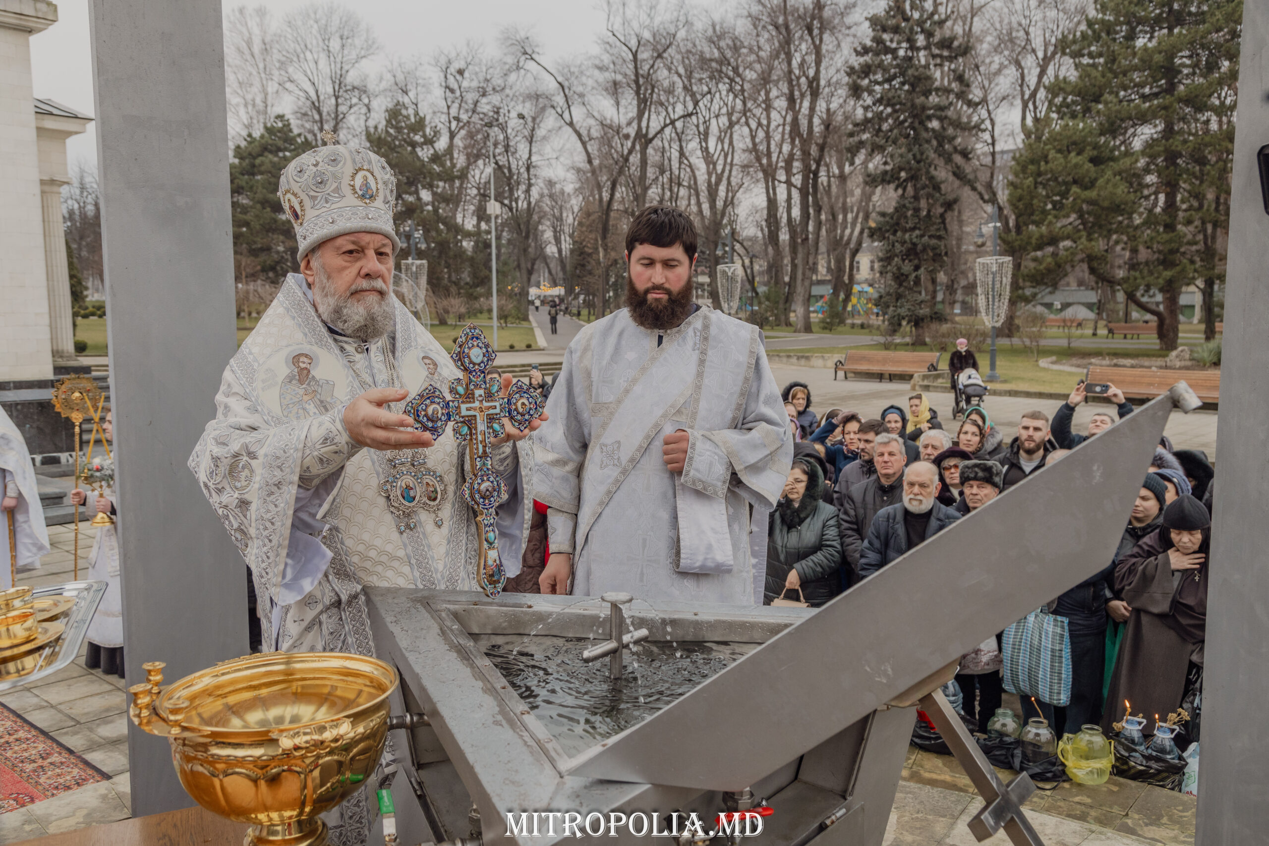 După Liturghie, în scuarul Catedralei Mitropolitane, Înaltpreasfințitul Vladimir a oficiat rânduiala sfințirii Aghiesmei Mare.