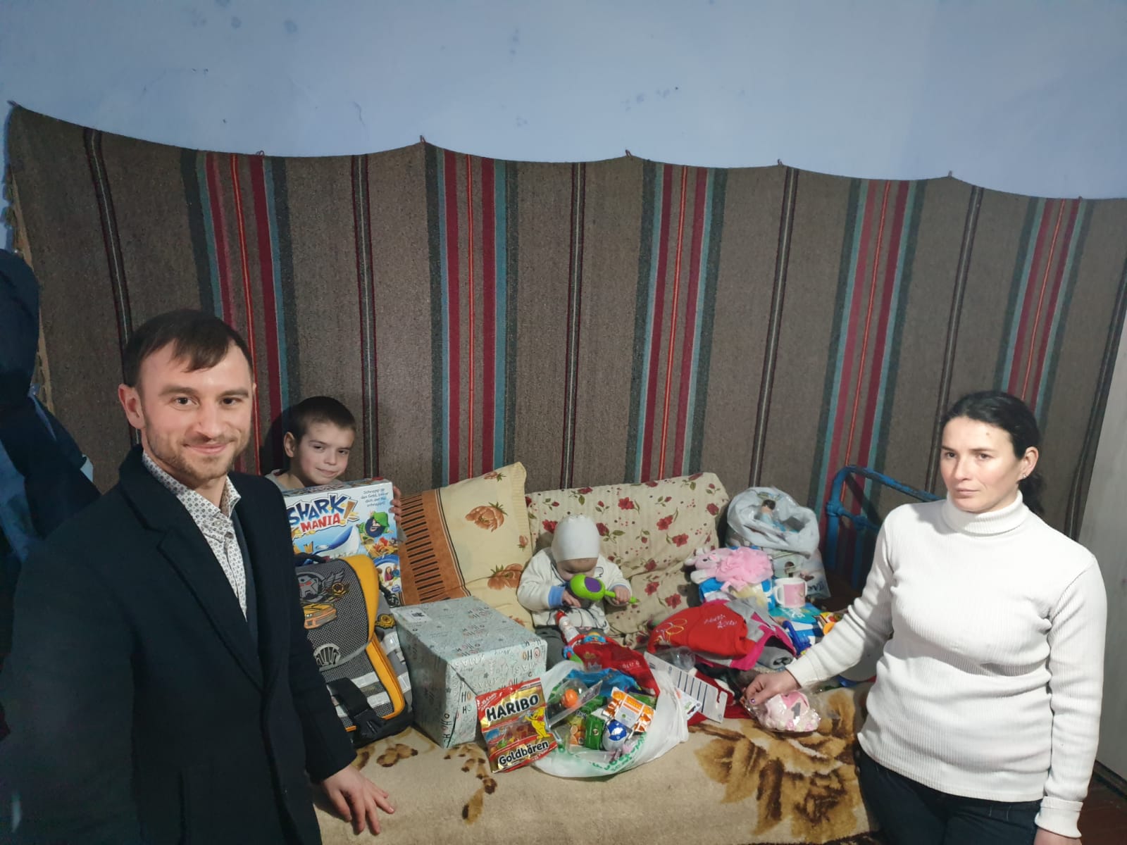 Ajutorul acordat familiilor a constat în: pătuc și cărucior pentru copii, două mașini de spălat, produse igienice (săpun, șampon, detergenți, pastă și periuțe de dinți, produse de uz chimic, ș. a.), pachete cu pamperși pentru copii, un blender, un aparat inhalator pentru copii, jucării, dulciuri, un ghiozdan cu rechizite școlare, haine și încălțăminte de iarnă, produse alimentare de bază, saci cu legume, ulei, prosoape, albituri, plapume și alte daruri.