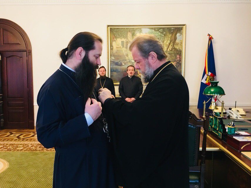 Joi, 01 februarie 2018, Întâistătătorul Bisericii Ortodoxe din Moldova, ÎPS Mitropolit Vladimir, în prezența Episcopilor Vicari: PS Ioan de Soroca și PS Siluan de Orhei și a Secretarului mitropolitan Prot. mitr. Vadim Cheibaș, a acordat înalta distincție mitropolitană Ordinul „Sf. Irh. Petru Movilă”, Arhimandritului Filaret (Cuzmin), Starețul Mănăstirii Căpriana, cu prilejul aniversării celor 40 de ani de la naștere.