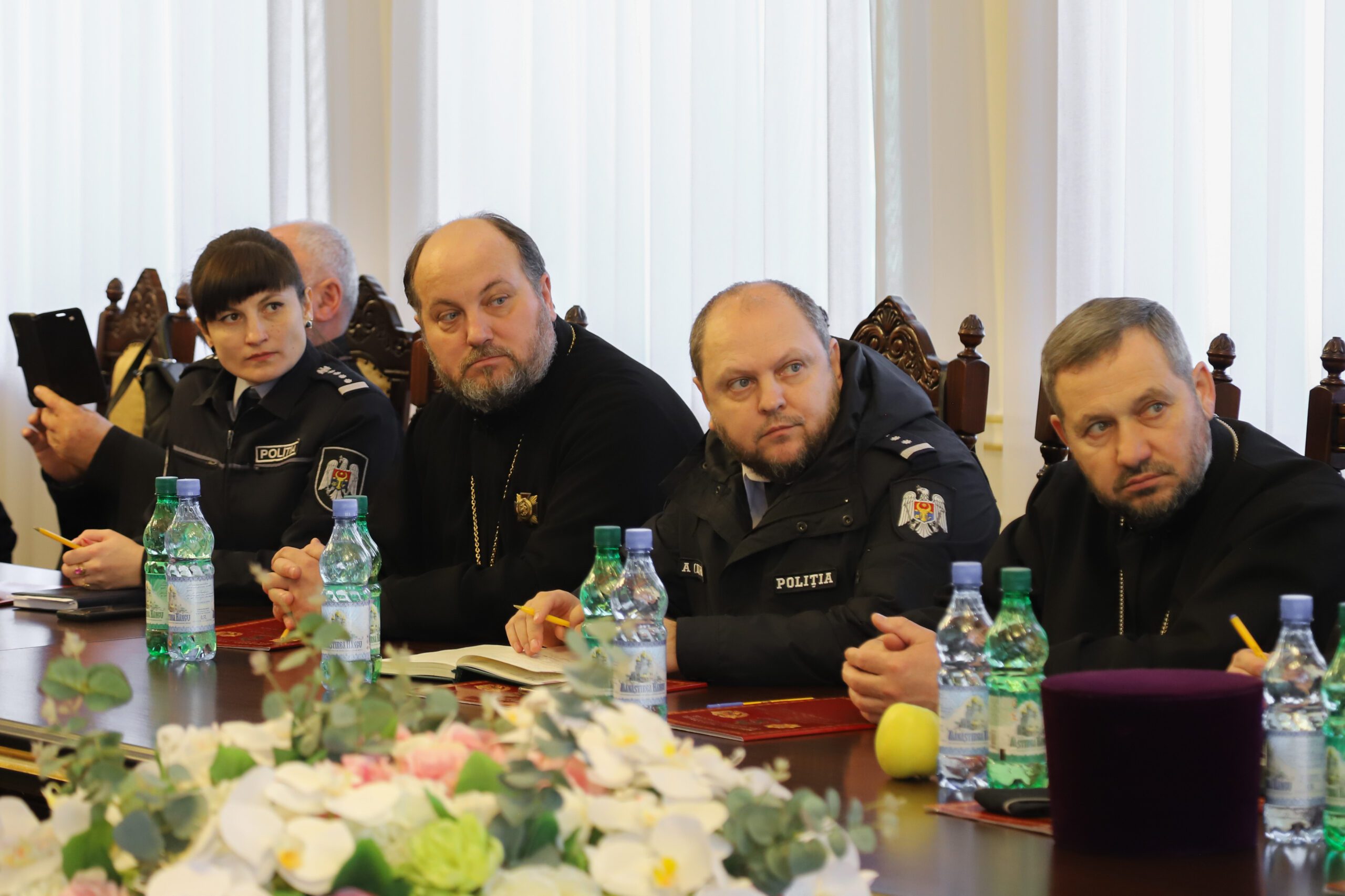 La această întrunire au participat: PS Ioan, episcop de Soroca, vicar mitropolitan, PC arhim. Nicolae (Roșca), președintele Sectorului Sinodal Activitate Pastorală în MAI, Armata Națională și Organele de Drept, Prot. mitr. Corneliu Dobrogeanu, vice președinte al Sectorului Sinodal, dl. Alexandru Bejan, comisar-șef, șef adjunct al IGP, dna Maria Melnic, ofițer psiholog al IGP, preoți militari și psihologi din cadrul Inspectoratului General al Poliției.