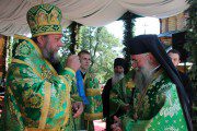 În continuare, sutele de credincioși adunați din toate colțurile țării, precum și de peste hotarele ei, i-au întâmpinat fiește pe ÎPS Mitropolit Vladimir, ÎPS Simeon, Mitropolit de Vinnița și Barsk, ÎPS Teodosie, Arhiepiscop de Tomis, venit aici să împartă bucuria sărbătorii cu binecuvântarea Preafericitului Daniel, Patriarh al Bisericii Ortodoxe Române, ÎPS Savva, Arhiepiscop de Tiraspol și Dubăsari, PS Nicodim, Episcop de Edineț și Briceni și PS Ioan, Episcop de Soroca.
