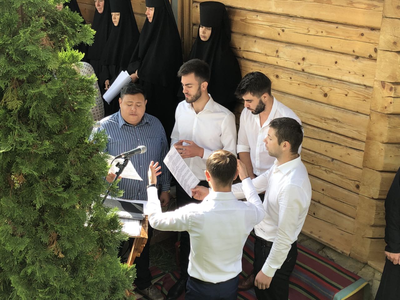Răspunsurile liturgice au fost date de corul de maici al Mănăstirii și Grupul coral bărbătesc „Gnosis”, condus de teologul Sergiu Crudu.