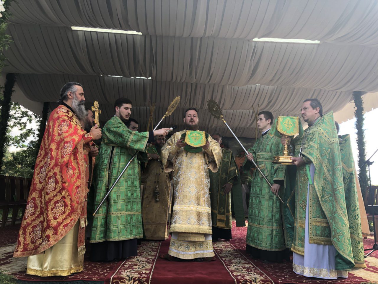 Slujba praznicală a fost oficiată în aer liber, lângă biserica cu hramul “Sf. Binecredincios Voievod Ștefan cel Mare”.