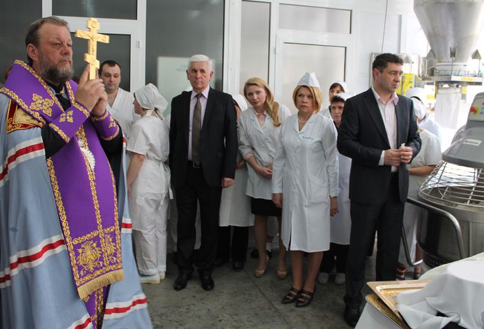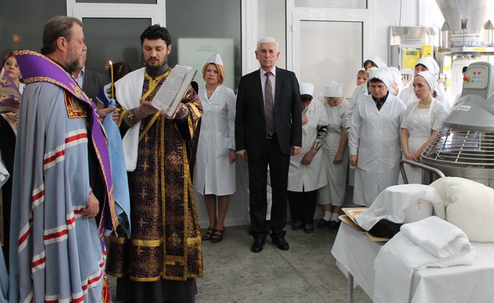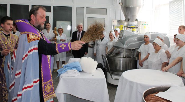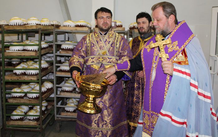 Înalt Prea Sfinţitul Mitropolit Vladimir dimpreună cu un sobor preoţesc a săvârşit un serviciu divin de sfinţire a liniei de producţie a cozonacilor de Paşti de la Combinatul de panificaţie “Franzeluţa” din Chişinău.