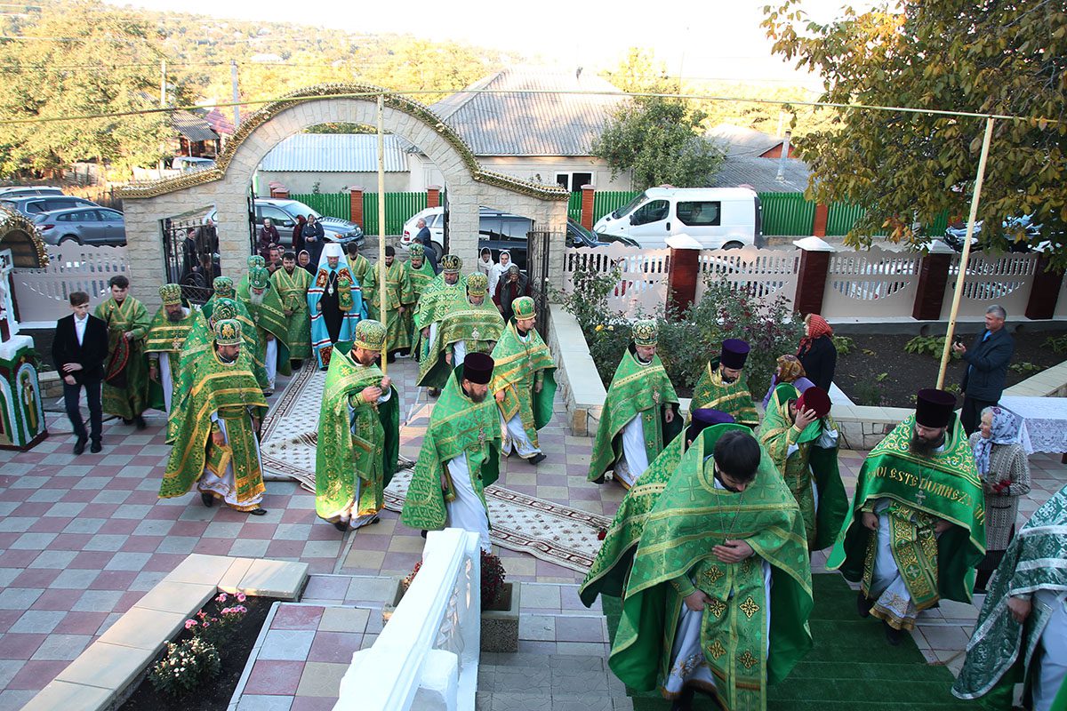 Slujba, la care au participat alături de Înaltpreasfinţia Sa, Prot. mitr. Marian Boldescu, Protopopul bisericilor din raionul Telenești şi un sobor preoțesc, a început cu rânduiala de sfinţire interioară a sfântului lăcaș.