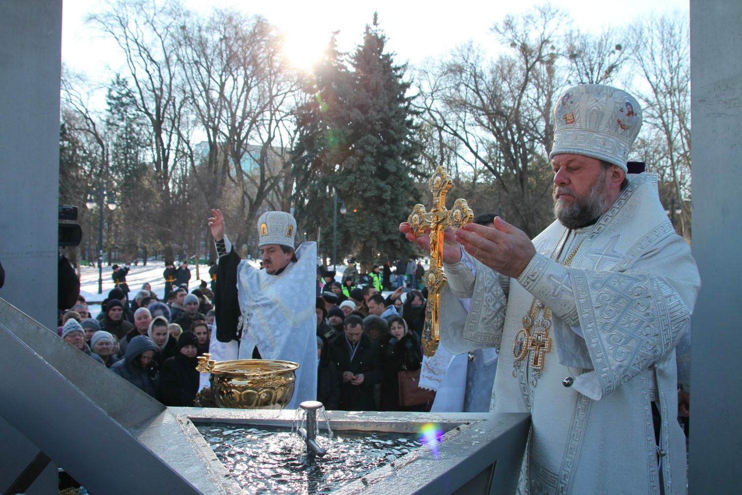 Cu o stare de rugăciune deosebită a fost marcat momentul în care Vlădica Vladimir a sfinţit Agheasma, unul dintre cele mai importante momente ale ceremoniei religioase de astăzi.