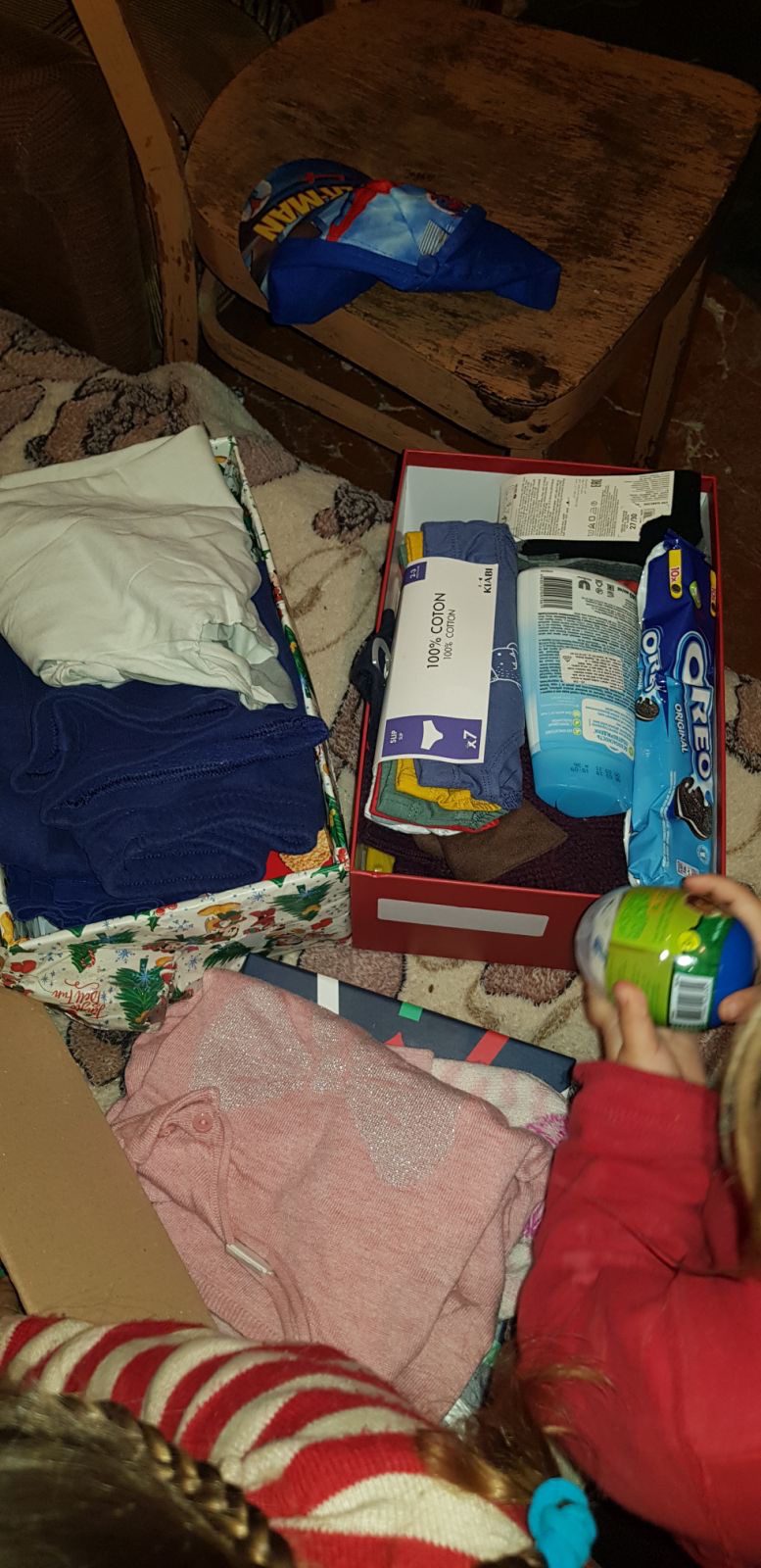 Ajutoarele materiale au inclus haine și încălțăminte de iarnă, jucării pentru copii, produse casnice, pachete cu produse alimentare și igienice, cutii cu cadouri pentru copii, dulciuri și alte daruri, oferite cu prilejul sărbătorilor Nașterii Domnului și a Sfântului Ierarh Vasile cel Mare.