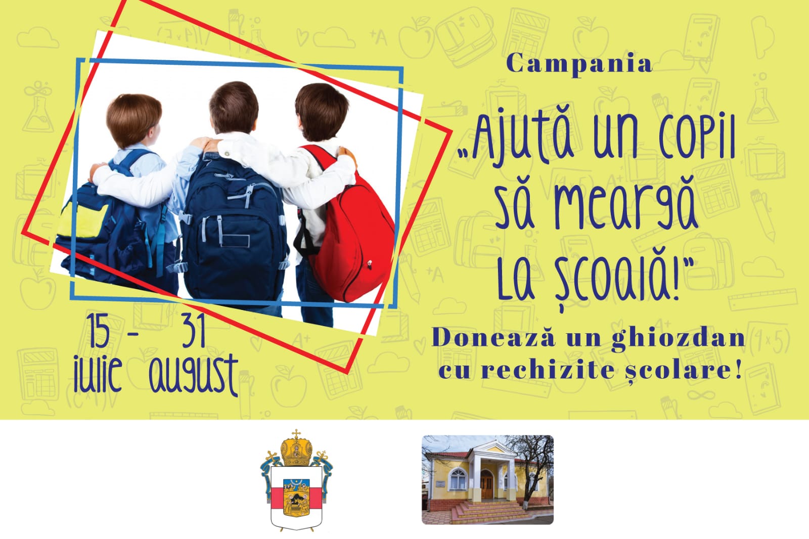 În acest sens, venim cu un îndemn la realizarea visului acestor copii unde eroul poți fi chiar tu, donând un ghiozdan cu rechizite școlare (de ex: 10 caiete de matematică, 10 caiete de limbă română, un caiet de muzică, o mapă pentru desen, un penar, un set de creioane colorate, 5 pixuri, acuarelă și 2 pensule, clei uscat, creioane simple, riglă, set de învelitori, radieră, ascuțitoare și altele la dorință) și ajutându-i să trăiască acele emoții pe care le aveai și tu atunci când îți revedeai colegii la început de an și te lăudai cu lucrurile noi.