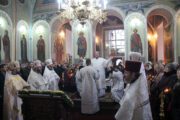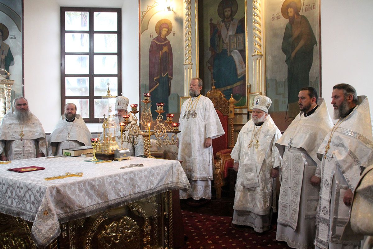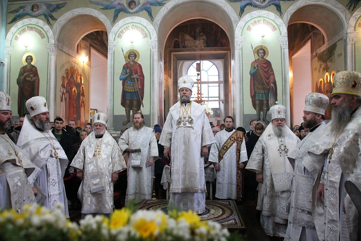 La Sfânta Liturghie alături de ÎPS Vladimir au înălțat rugăciuni: chiriarhul locului PS Anatolie, Episcop de Cahul și Comrat și PS Nicodim Episcop de Edineț și Briceni, precum și un impunător sobor de preoți și diaconi.