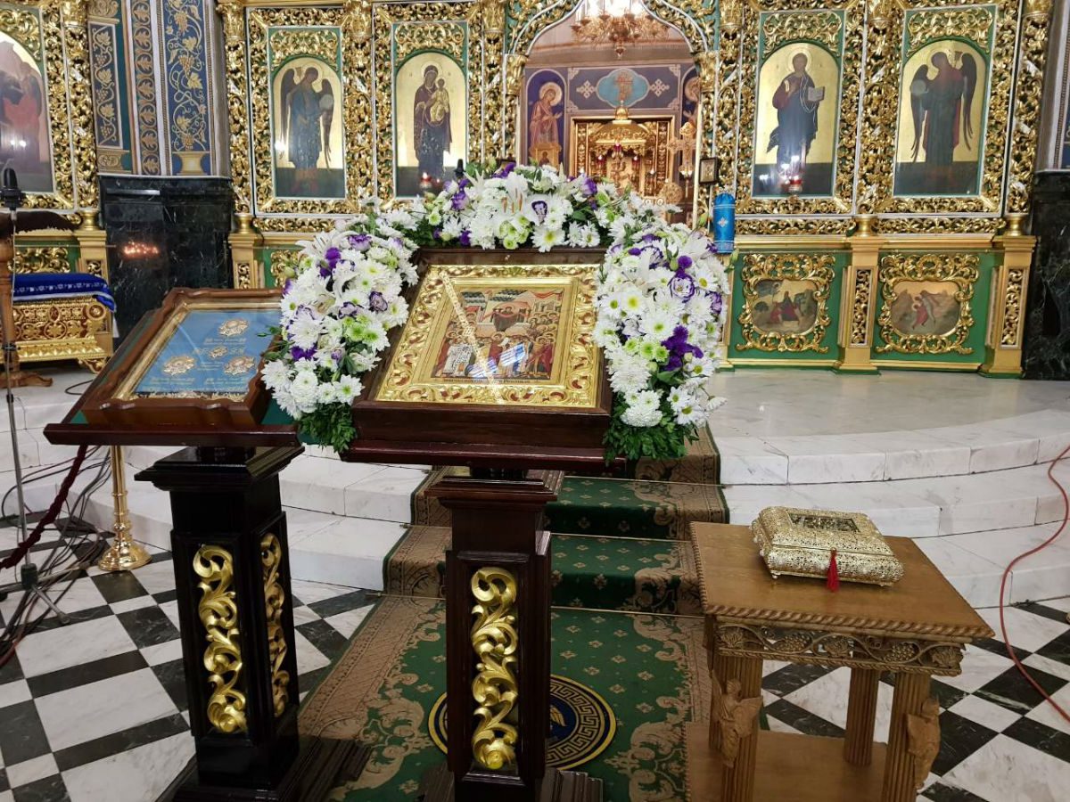 În seara zilei de vineri, 13 octombrie 2017, la Catedrala mitropolitană către Hramul Capitalei – Acoperământul Maicii Domnului, au fost aduse spre închinare mari sfințenii ale Bisericii Ortodoxe: părticele din veșmântul Maicii Domnului, o pietricică din Mormântul Maicii Domnului și un chivot cu moaștele Sfinților mucenici Ciprian și Iustina.