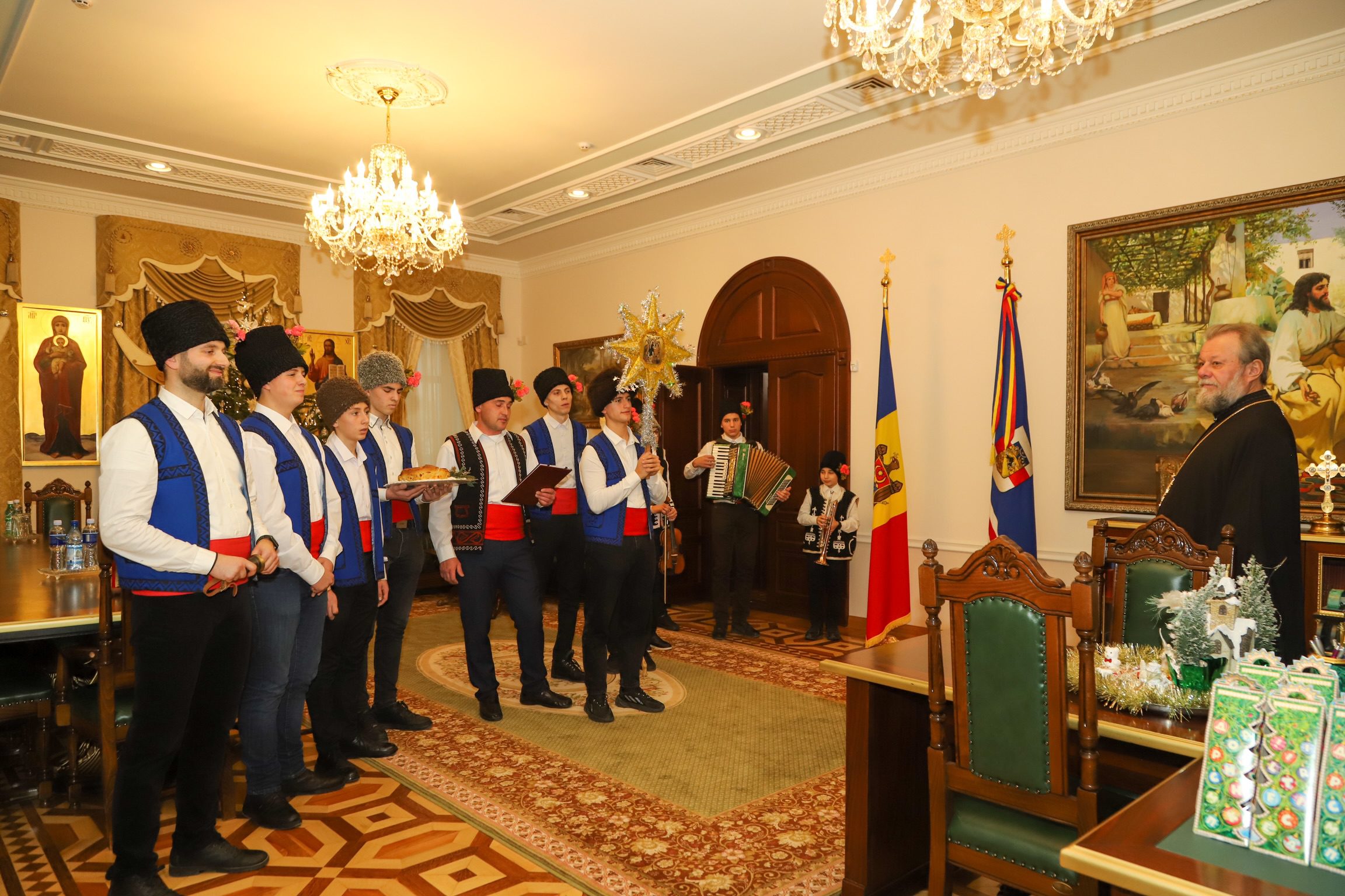 Colindătorii au intonat imne de bucurie și mărire, specifice acestu-i Mare praznic și l-au felicitat pe Întâistătător cu sfintele sărbători de iarnă, dorindu-i deplină sănătate şi alese bucurii duhovniceşti.