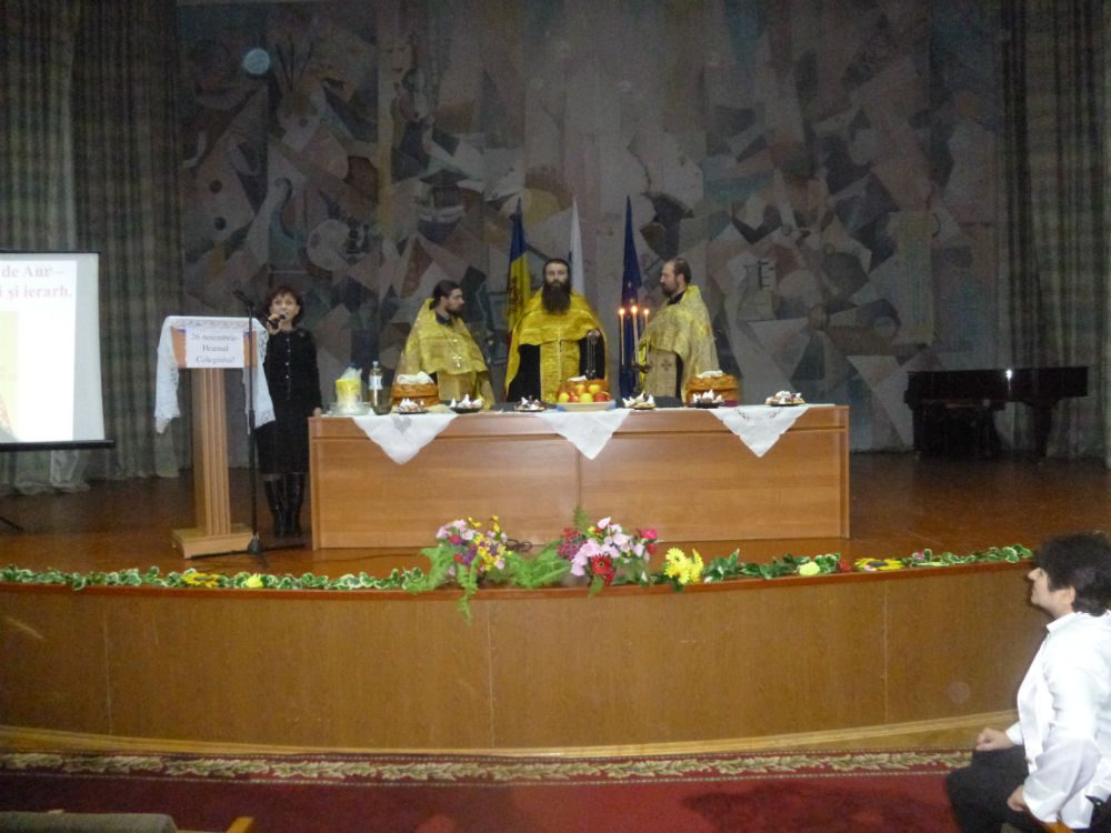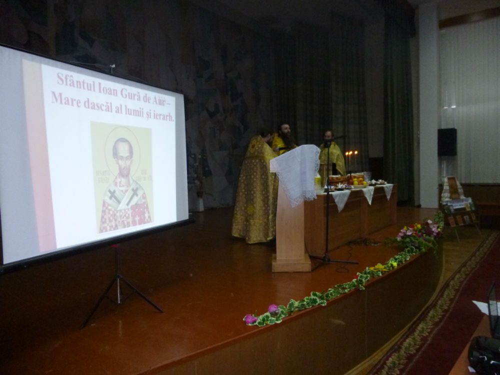 Pr. Marin Cij Paroh al bisericii “Sf. Arh. Mihail” din incinta Spitalului municipal “Sf. Arh. Mihail” împreună cu slujitorii preotul Leonid Țugulea și preotul Andrei Morari, după rînduiala slujbei au venit cu un cuvînt de felicitare și de învățătură depre post, Taina Mărturisirii și Taina Sf.Împărtășanii. Profesorii și elevii au pregătit o expoziție de carte din lucrările Sfîntului Ioan Gură de Aur.