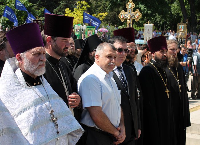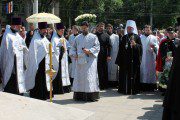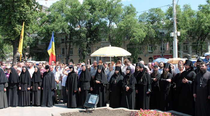 În continuare, grupul de creștini în frunte cu Chiriarhul s-a îndreptat către monumentul Bine-credinciosului Voievod Ștefan cel Mare și Sfânt, unde Mitropolitul s-a adresat cu un cuvânt de învățătură și îmbărbătare către toți cei prezenți, îndemnându-i și în continuare, să se roage cu osârdie Domnului și Sfinților Săi ca să ne păzească neamul de greutăți și vicleșuguri pentru a transmite urmașilor cea mai prețioasă moștenire a noastră – credința în Dumnezeul și Mântuitorul nostru Iisus Hristos.