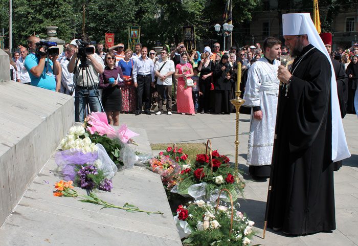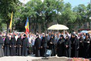 După Liturghia Praznicală săvârșită în ziua celebrării Sfintelor Femei Mironosițe, sute de creștini bine-credincioși s-au adunat în scuarul Catedralei Mitropolitane, pentru a participa la un Te-Deum oficiat de către Înalt Prea Sfințitul Mitropolit Vladimir și pentru a se ruga împreună cu Întâistătătorul și clerul prezent spre ferirea țării și a poporului de toată ispita și rătăcirea, mai ales în această zi de grea încercare duhovnicească, când se încearcă răsturnarea sistemului nostru de valori milenar.