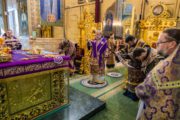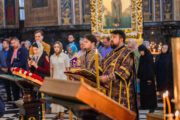 Înaltpreasfinției Sale i-au coliturghisit: prot mitr. Vadim Cheibaș, secretarul mitropolitan și eclesiarh al catedralei, împreună cu soborul de preoți și diaconi.