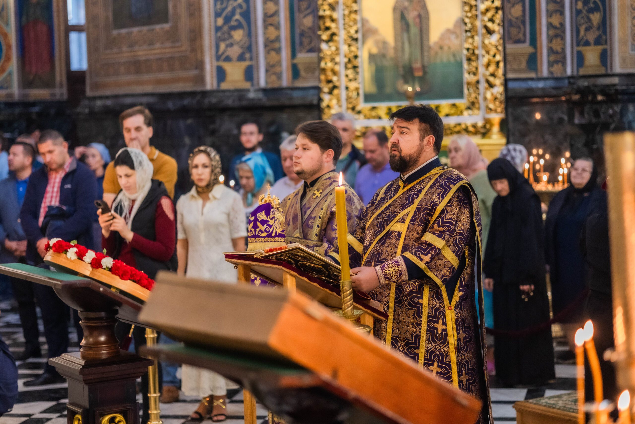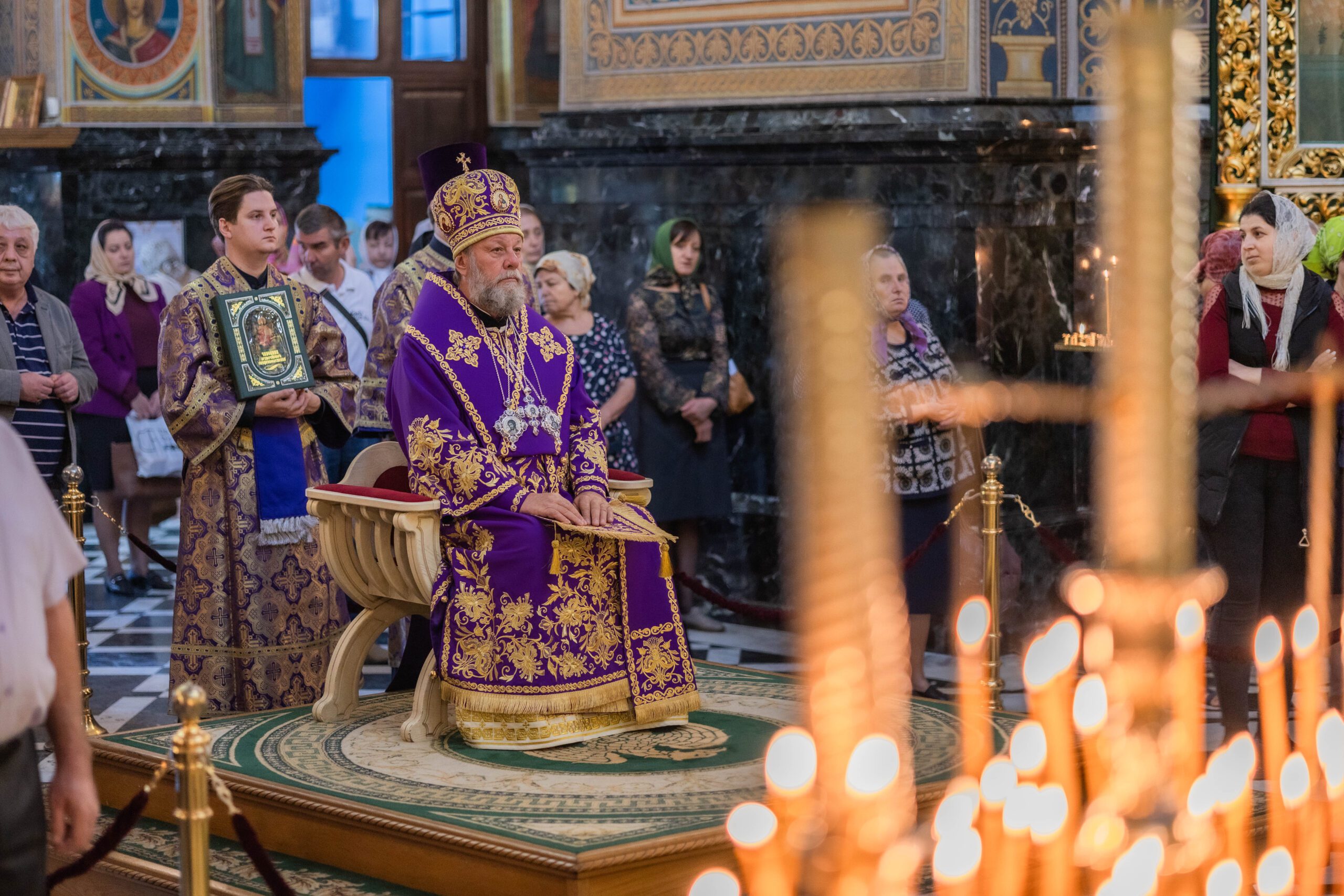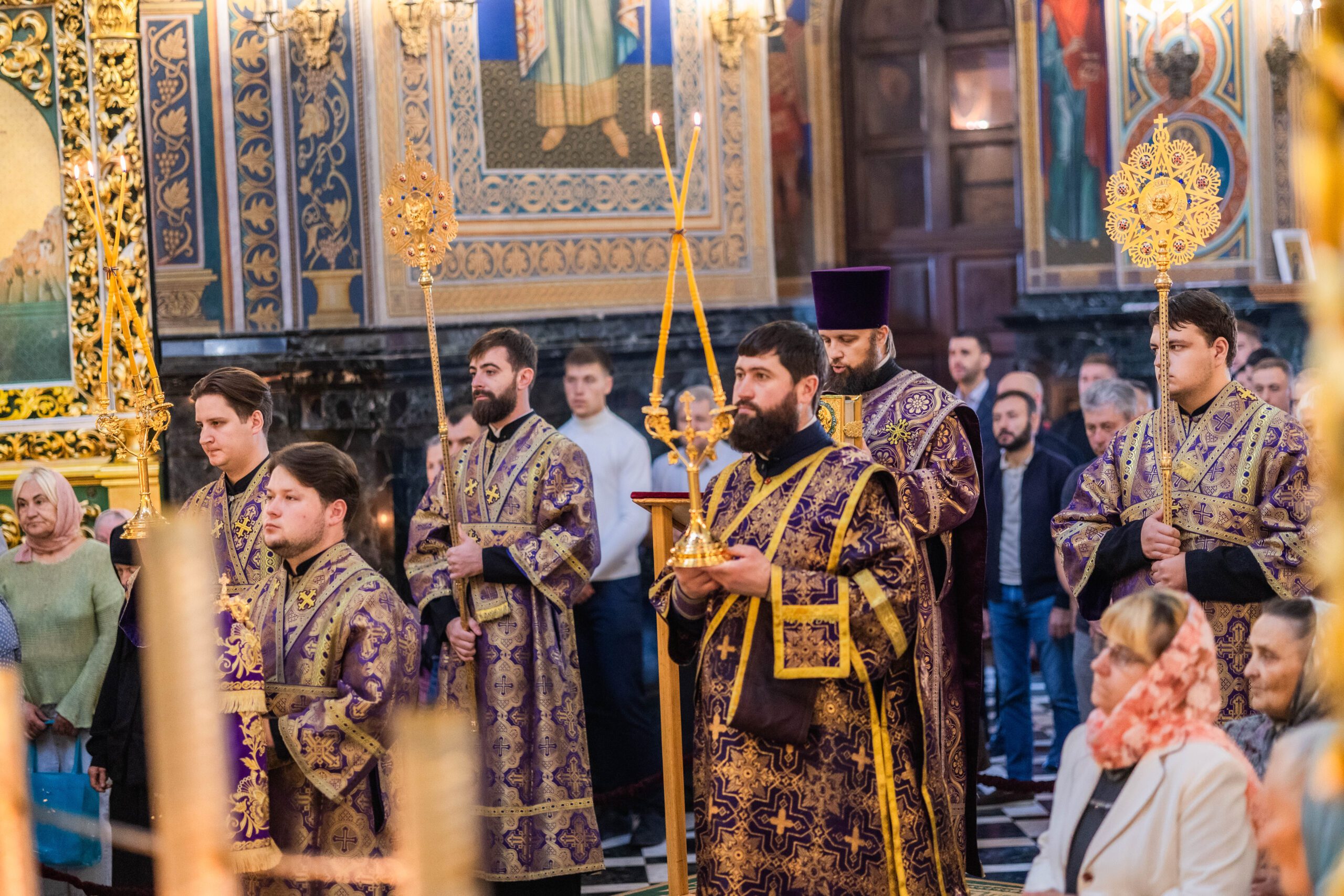 Înaltpreasfinției Sale i-au coliturghisit: prot mitr. Vadim Cheibaș, secretarul mitropolitan și eclesiarh al catedralei, împreună cu soborul de preoți și diaconi.