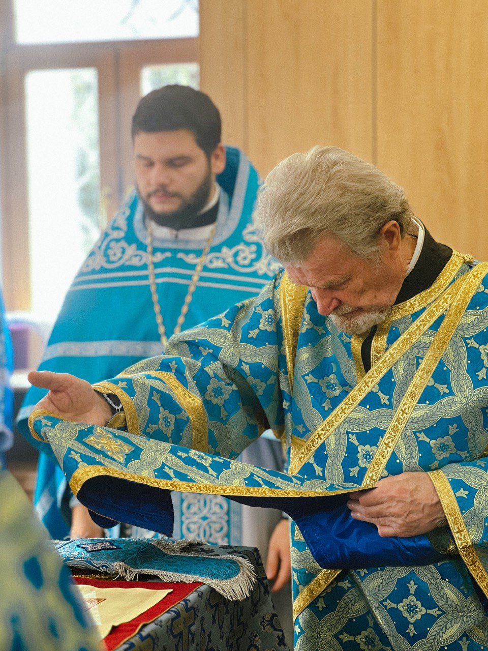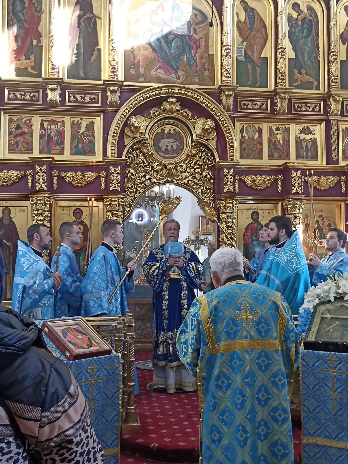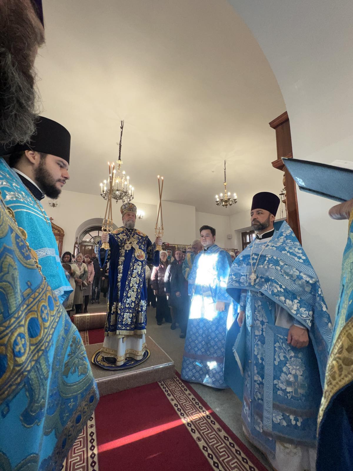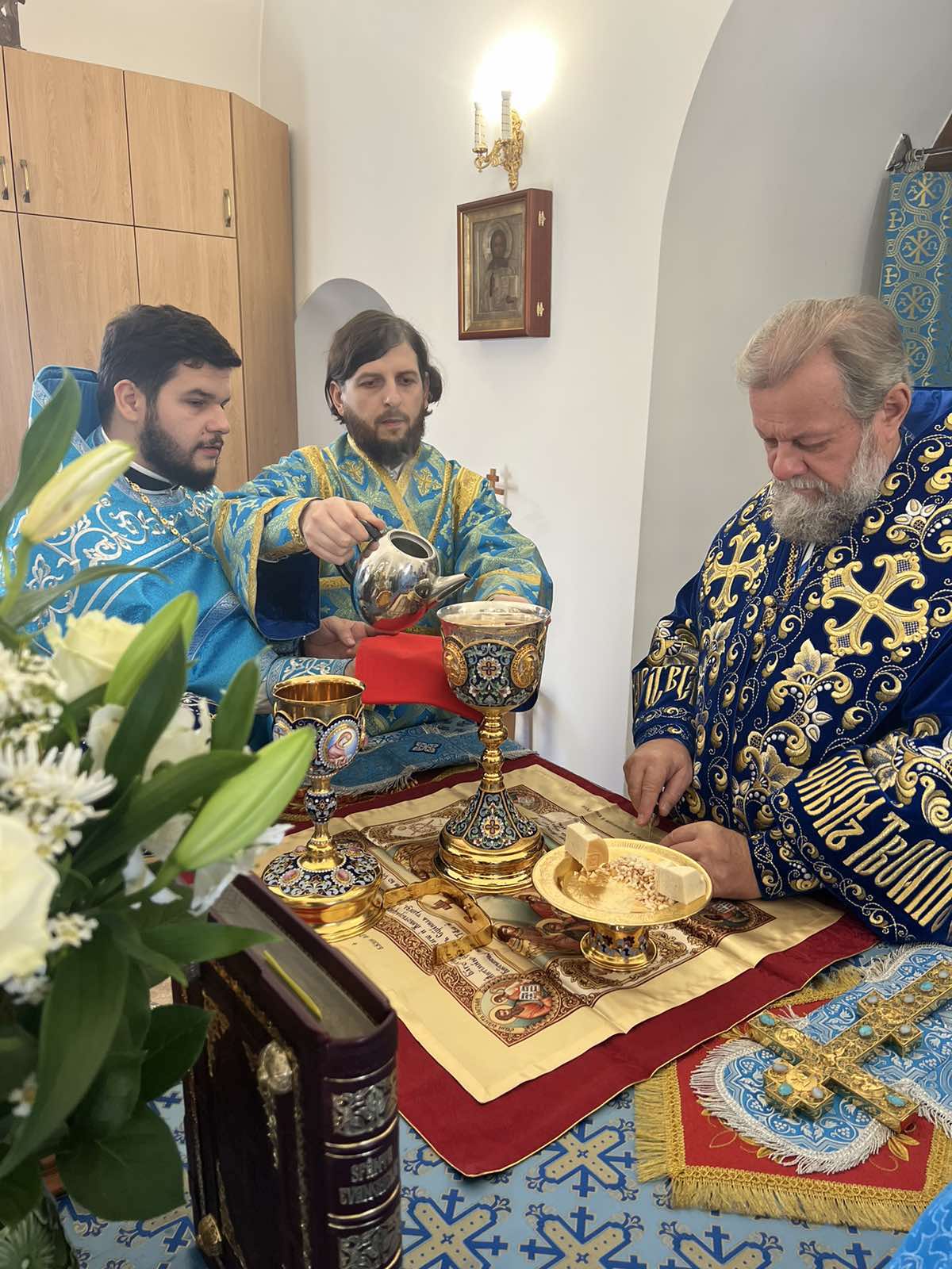 Alături de Întâistătătorul Bisericii Ortodoxe din Moldova au coliturghisit: Ieromonahul Efrem (Rusu), ajutor al parohului comunității, Protoiereul Victor Postica, Protodiaconul Alexandru Volcov și diaconul Vasile Golban.