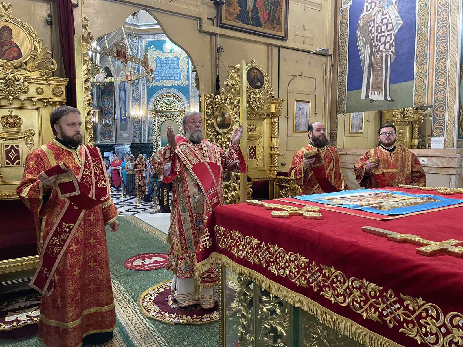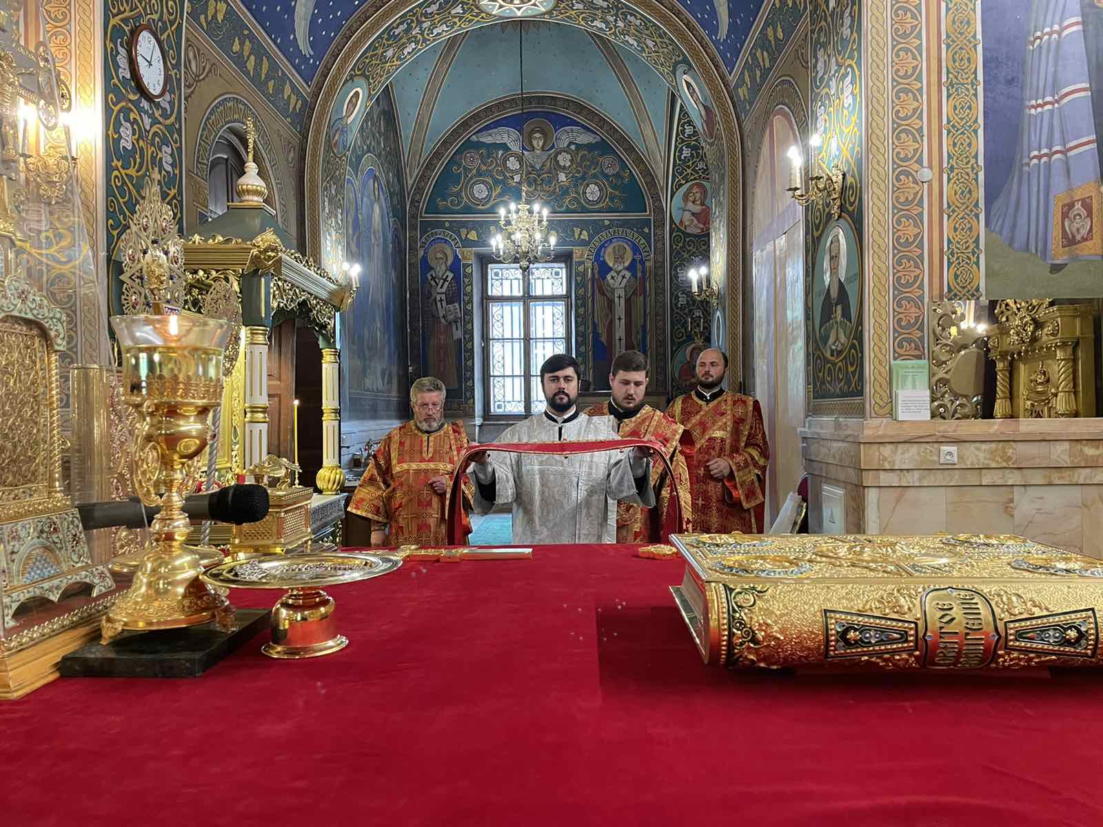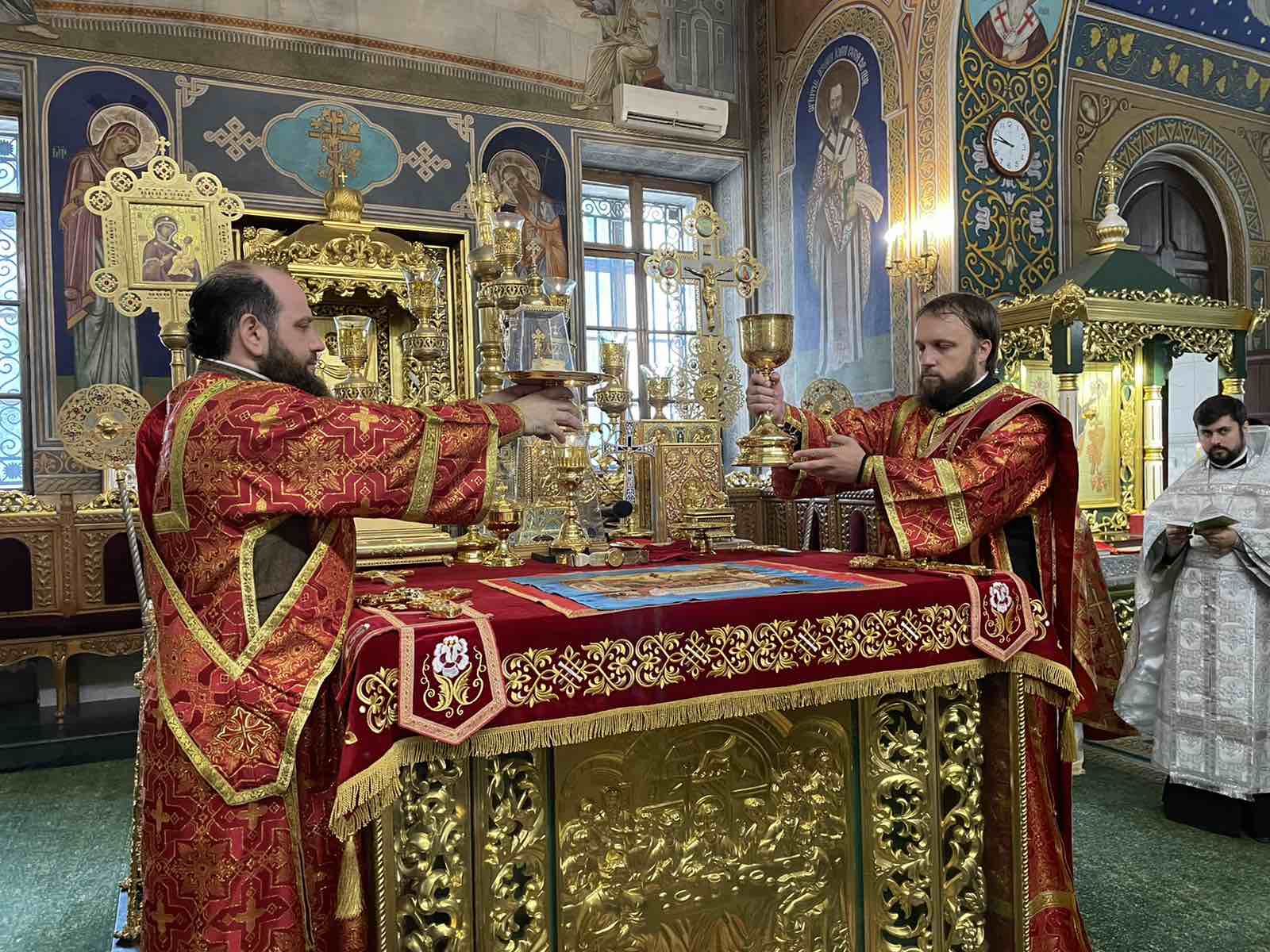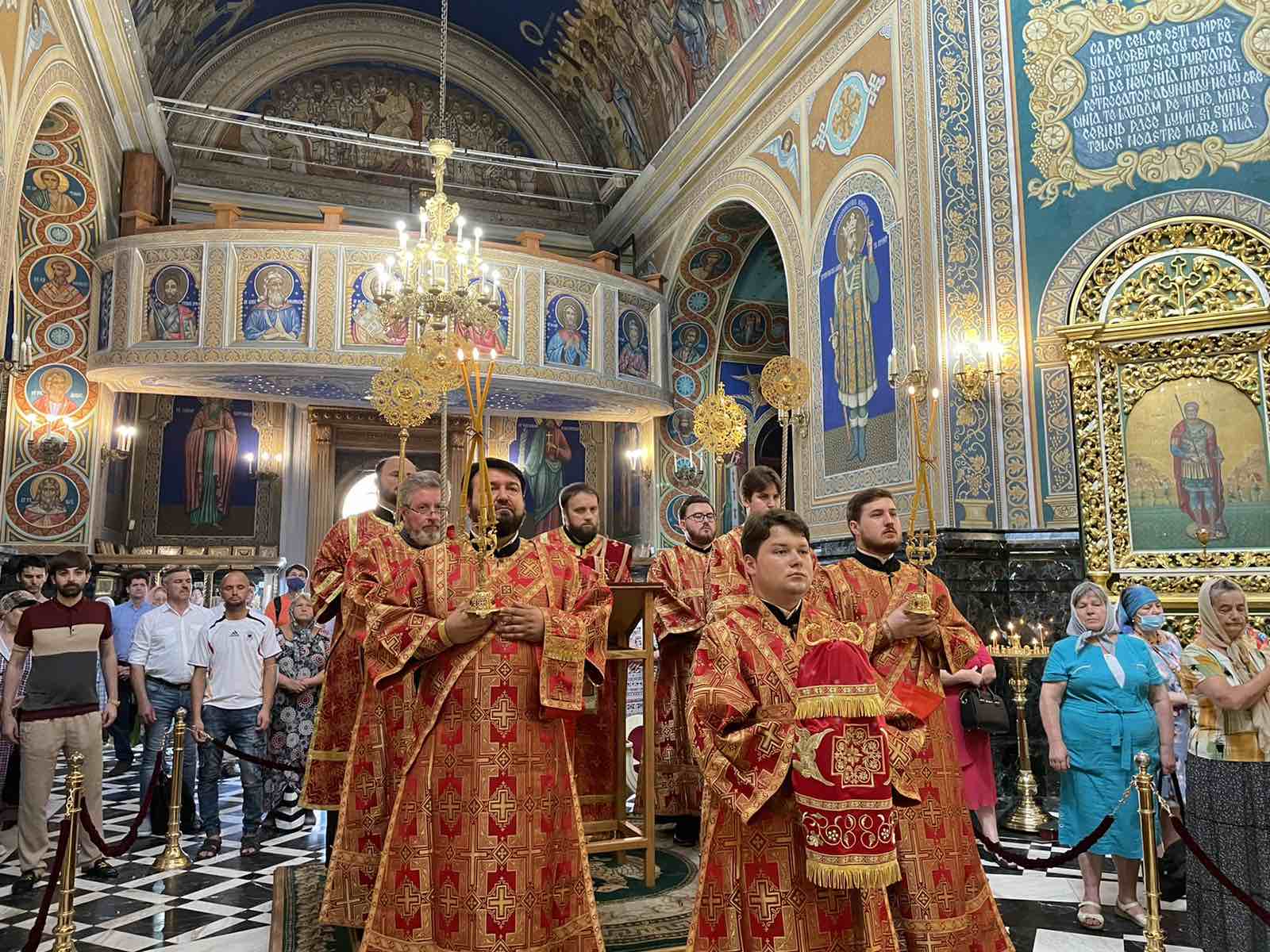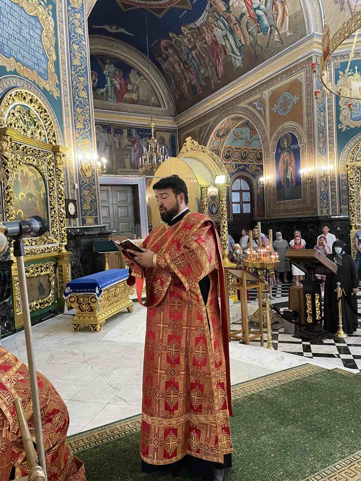 Alături de Întâistătător au coliturghisit: Prot. mitr. Vadim Cheibaș, Secretarul Mitropoliei Moldovei și eclesiarh al Catedralei Mitropolitane, și un sobor de preoți și diaconi.