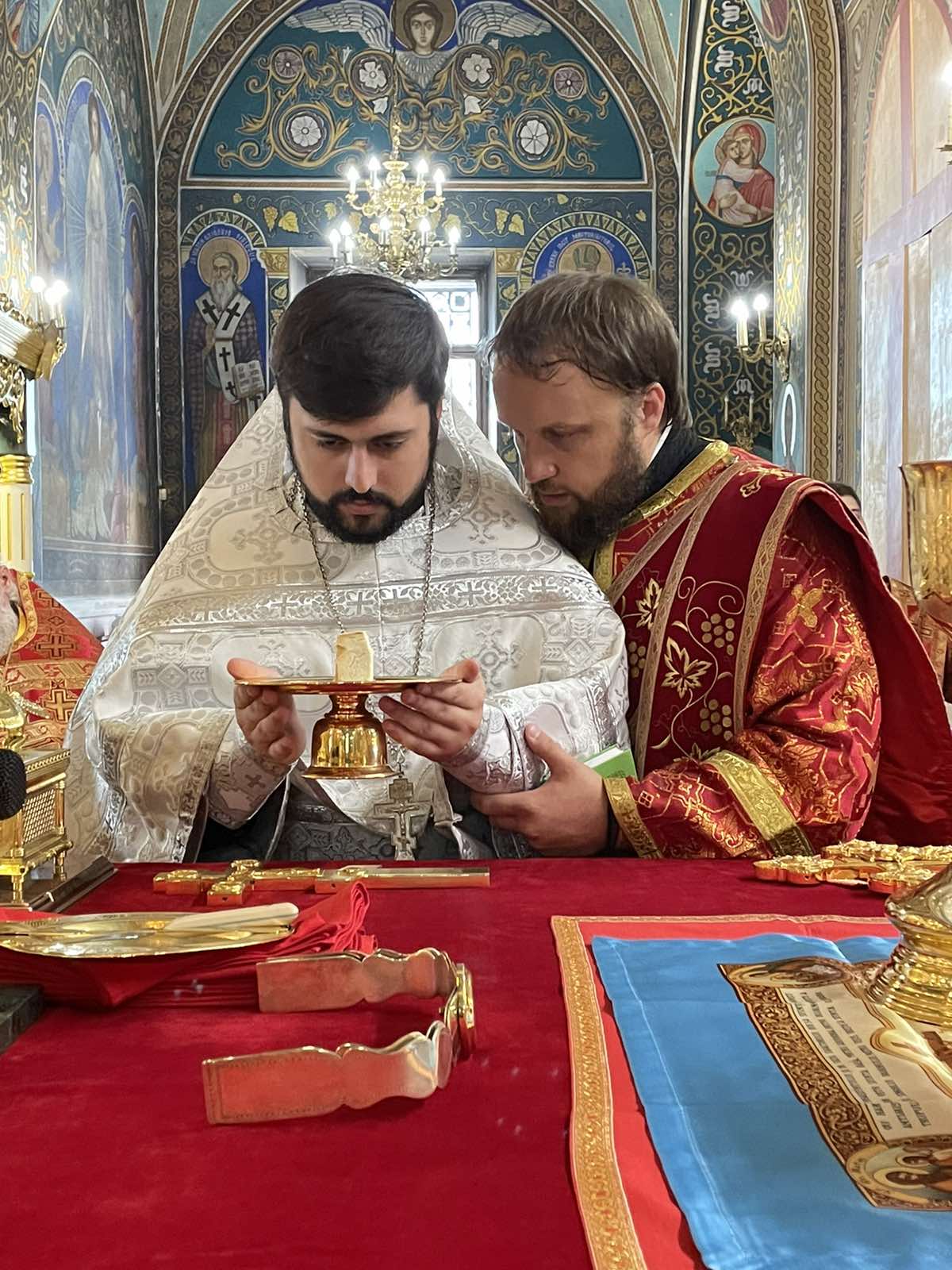 Sărbătoarea de astăzi a fost înfrumusețată cu o hirotonie. ÎPS Vladimir l-a hirotonit în treapta de preot pe diaconul Marin Grigoriță, student ATOM, anul II, pe seama Catedralei Mitropolitane.