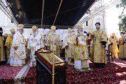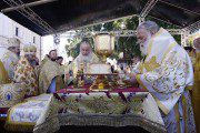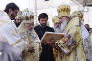 „Astăzi noi iarăși confirmăm fidelitatea noastră acestei misiuni date de Dumnezeu”, a constatat el. „Noi ne-am adunat aici, sub acoperământul unui loc sfânt, care i-a fost dat Bisericii acestor plaiuri, unde au strălucit mulți sfinți, mucenici, sfinți ierarhi, cuvioși călugări, care în timpul vieții generațiilor lor au fost aici și care continuă să fie aici astăzi, care îi alintă pe toți credincioșii și sunt lumina care luminează întregii lumi. Și astăzi noi luăm această povară bună asupra noastră, pentru ca Evanghelia mântuitoare a Domnului nostru Iisus Hristos la fel să poată fi propovăduită în toate capetele pamântului”.