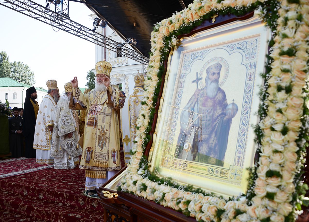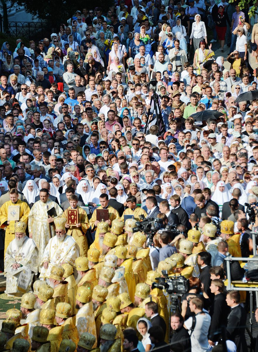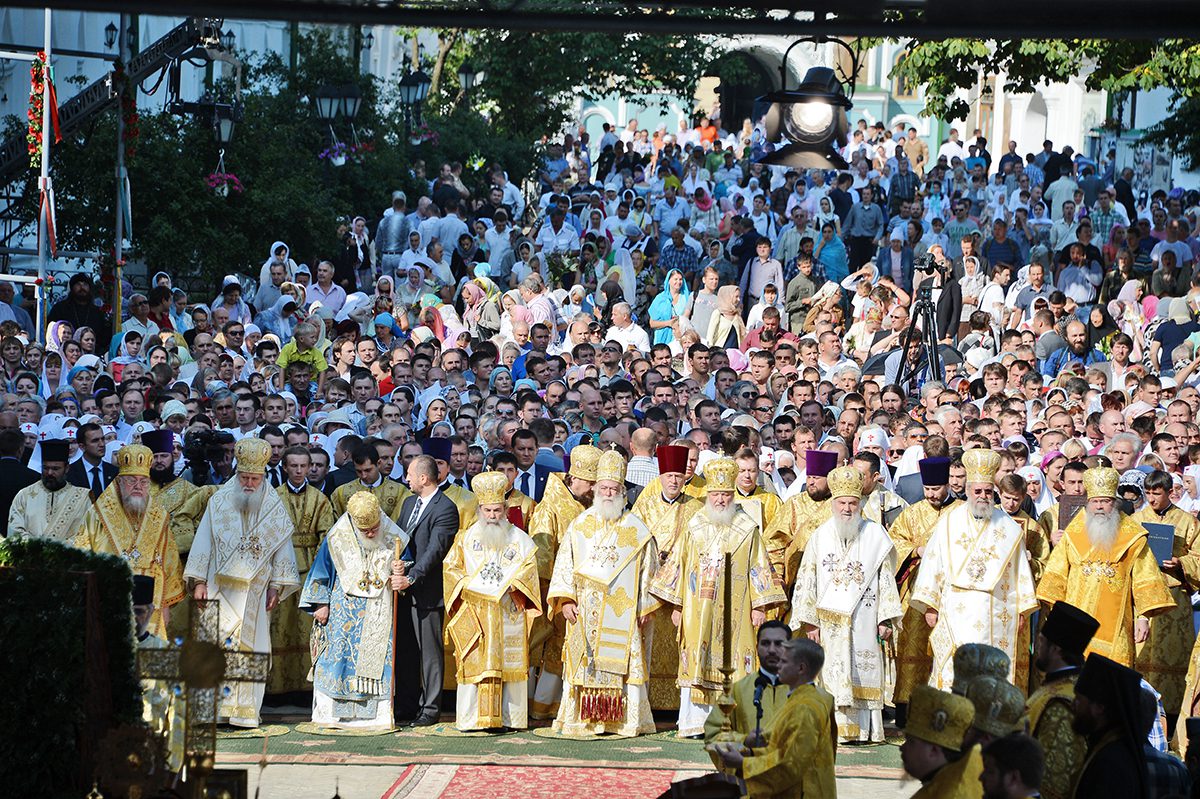 Mii de oameni s-au adunat, la 28 iulie 2013, în lavra Pecerska „Adormirea Maicii Domnului” din Kiev la serviciul divin solemn de ziua pomenirii sfântului întocmai cu apostolii cneazului Vladimir, botezătorul Rusiei.