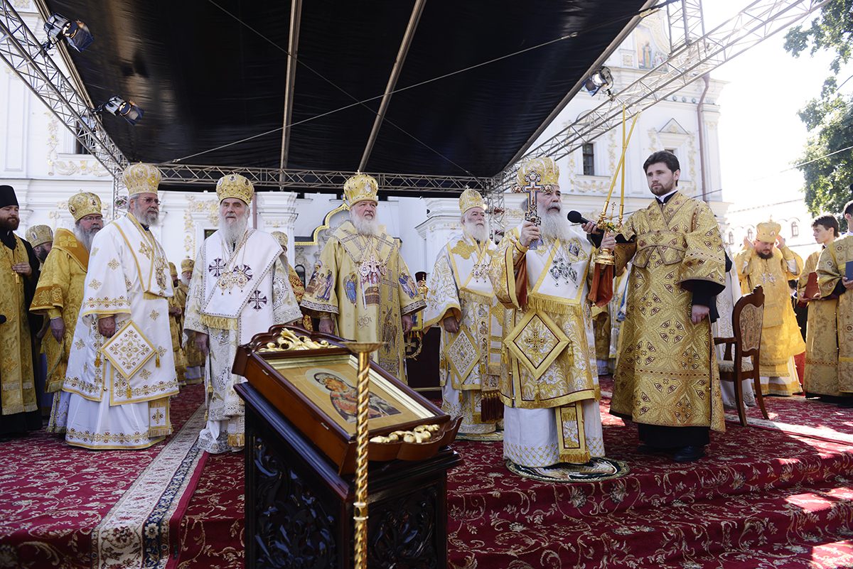 Dumnezeiasca liturghie, în piața catedralei a așezământului, a fost săvârșită de către Preafericitul Patriarh al Alexandriei și al întregii Africi Teodor II, Preafericitul Patriarh al Ierusalimului și al întregii Palestine Teofil III, Sanctitatea Sa Patriarhul Moscovei și al întregii Rusii Chiril, Sanctitatea Sa Preafericitul Patriarh-Catolicos al întregii Georgii Ilie II, Sanctitatea Sa Patriarhul Serbiei Irineu, Sanctitatea Sa Patriarul Bulgariei Neofit, Preafericitul Arhiepiscop al Noii Justiniane și al întregului Cipru Hrisostom II, Preafericitul Mitropolit al Varșoviei și al întregii Polonii Sava, Preafericitul Mitropolit al întregii Americi și al Canadei Tihon, Preafericitul Mitropolit al Kievului și al întregii Ucraine Vladimir.