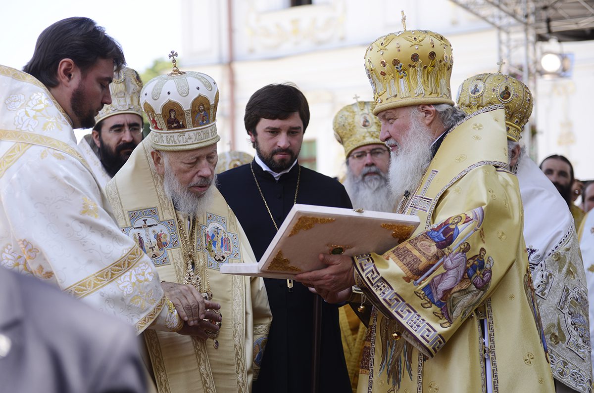 Sanctitatea Sa i-a înmânat în dar Preafericitului mitropolit al Kievului și al întregii Ucraine Vladimir o cruce pectorală și două panaghii, precum și un toiag și micul omofor.