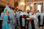 În continuare, Prot. Mitr. Vadim Cheibaș, Protopopul sectorului I Chișinău, l-a felicitat pe Întâistătător cu ocazia aniversării celor două secole de existență a Eparhiei noastre și cu faptul că este cel mai longeviv Mitropolit de la Ierarhul Gavriil Bănulescu-Bodoni încoace. Cu această ocazie, părintele Vadim i-a urat Înalt Prea Sfinției Sale să stea încă mulți ani înainte cu destoinicie la cârma Bisericii Ortodoxe din Moldova. Totodată, Părintele Protopop i-a mulțumit Arhipăstorului pentru grija părintească și pentru organizarea osârdioasă a evenimentului jubiliar.
