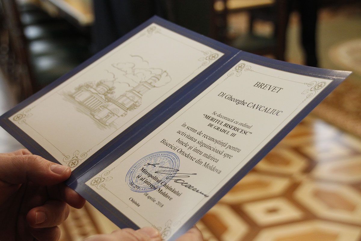 – Ordinul Meritul Bisericesc, de gr. III,  Șefului adjunct al Inspectoratului General de Poliție, IGP al MAI, Dl Gheorghe Cavcaliuc.