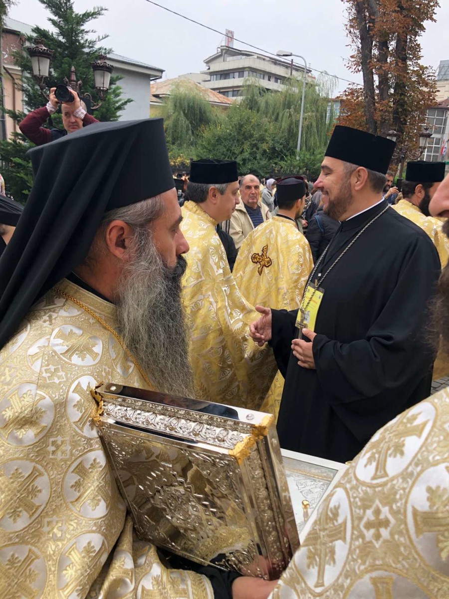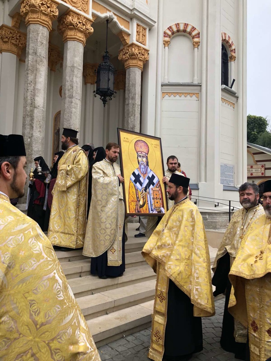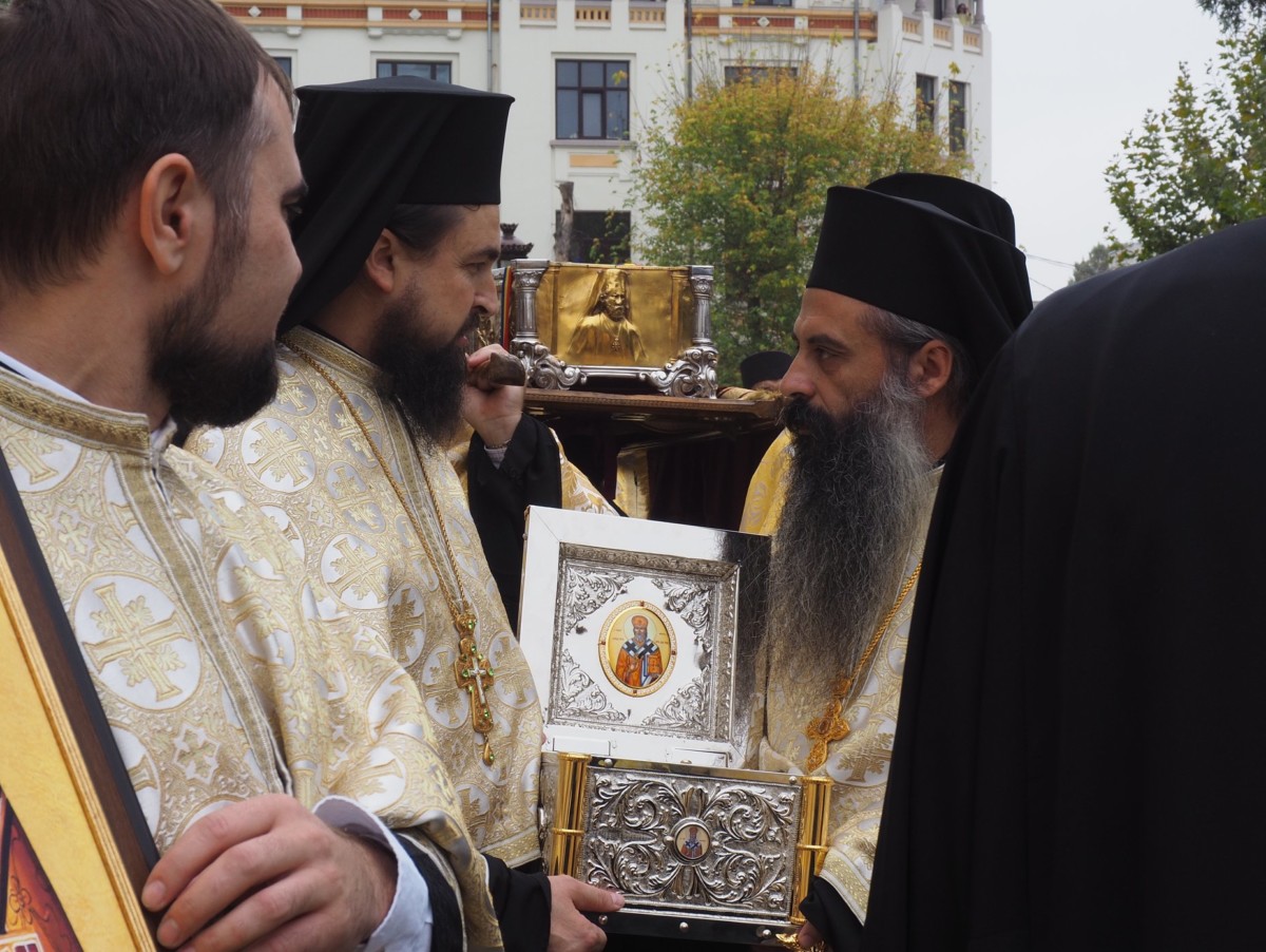 Delegația Bisericii Ortodoxe din Moldova, condusă de Preacuviosul Părinte Arhimandrit Porfirie, Starețul Sfintei Mânăstiri Sireți însoțit de Preacuvioasa Maica Stareță a Sfintei Mânăstiri Suruceni, Egumena Epistimia, Preacuvioșii Arhimandriții Natanael și Mihail, Monahia Singlitichia, Ana Cecan, Victor Nicolăescu au transmis cu binecuvântarea Înaltpreasfințitului Vladimir, Mitropolitul Chișinăului și al Întregii Moldove, un fragment din Moaștele Sfântului Ierarh Dionisie, Episcopul Cetății-Albe-Ismail, care a fost purtat în procesiunea tradițională Calea Sfinților și depus spre închinare credincioșilor în baldachinul de pe Colina Bucuriei a Patriarhiei Române.