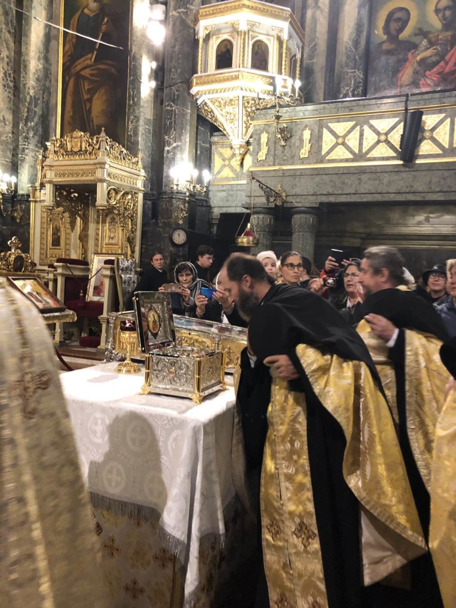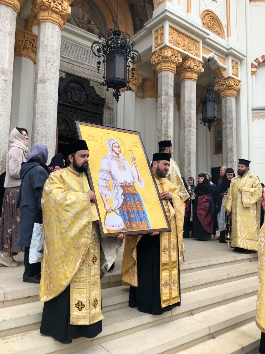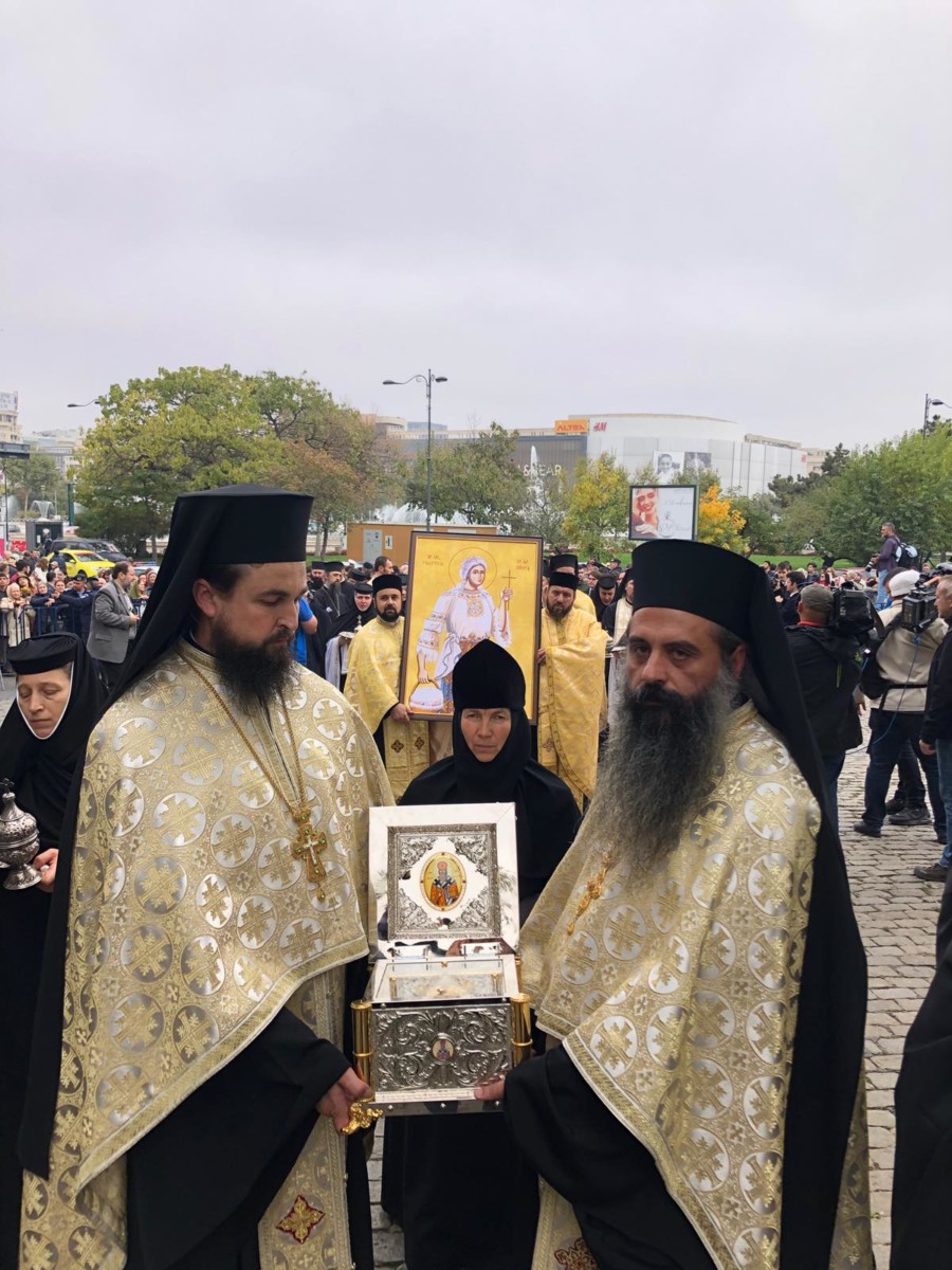 Delegația Bisericii Ortodoxe din Moldova, condusă de Preacuviosul Părinte Arhimandrit Porfirie, Starețul Sfintei Mânăstiri Sireți însoțit de Preacuvioasa Maica Stareță a Sfintei Mânăstiri Suruceni, Egumena Epistimia, Preacuvioșii Arhimandriții Natanael și Mihail, Monahia Singlitichia, Ana Cecan, Victor Nicolăescu au transmis cu binecuvântarea Înaltpreasfințitului Vladimir, Mitropolitul Chișinăului și al Întregii Moldove, un fragment din Moaștele Sfântului Ierarh Dionisie, Episcopul Cetății-Albe-Ismail, care a fost purtat în procesiunea tradițională Calea Sfinților și depus spre închinare credincioșilor în baldachinul de pe Colina Bucuriei a Patriarhiei Române.