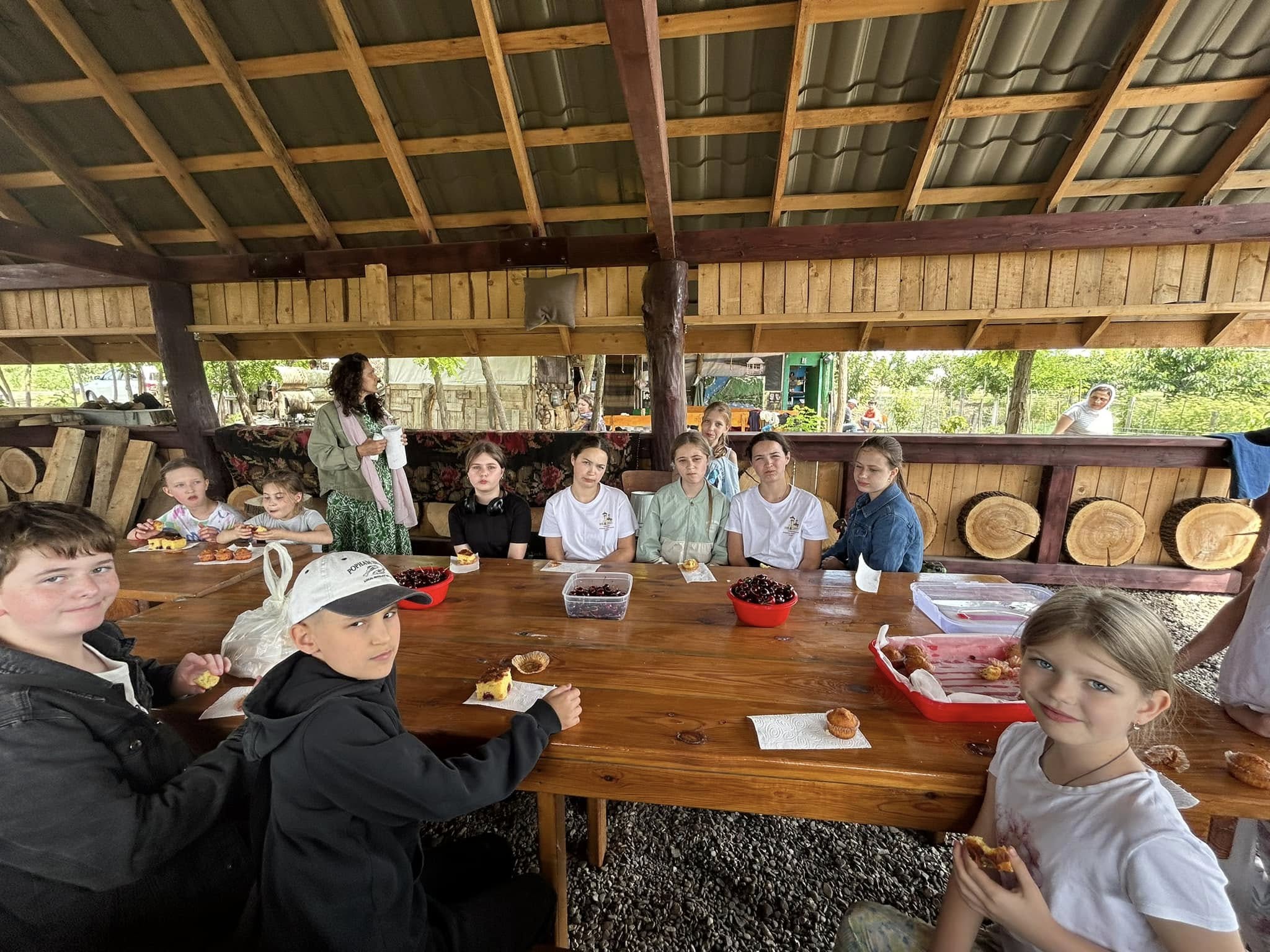 Pe lângă hrana sufletească, copiii au gustat din bucate pregătite cu grijă și dragoste în trapeza mănăstirii: legume proaspete din grădină, pâine caldă și cireșe dulci de sezon.