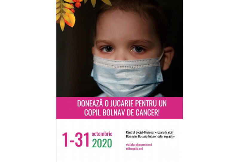 Cu binecuvântarea Întâistătătorului Bisericii Ortodoxe din Moldova, ÎPS Mitropolit Vladimir, Sectorul Sinodal Activitate Socială și Caritate al Mitropoliei în parteneriat cu AO „Viață fără leucemie” lansează Campania „Donează o jucărie pentru un copil bolnav de cancer!”. Campania se va desfășura în perioada 1-31 octombrie 2020 și vine în susținerea copiilor care suferă de maladii oncologice, internați în Institutul Oncologic din Republica Moldova.