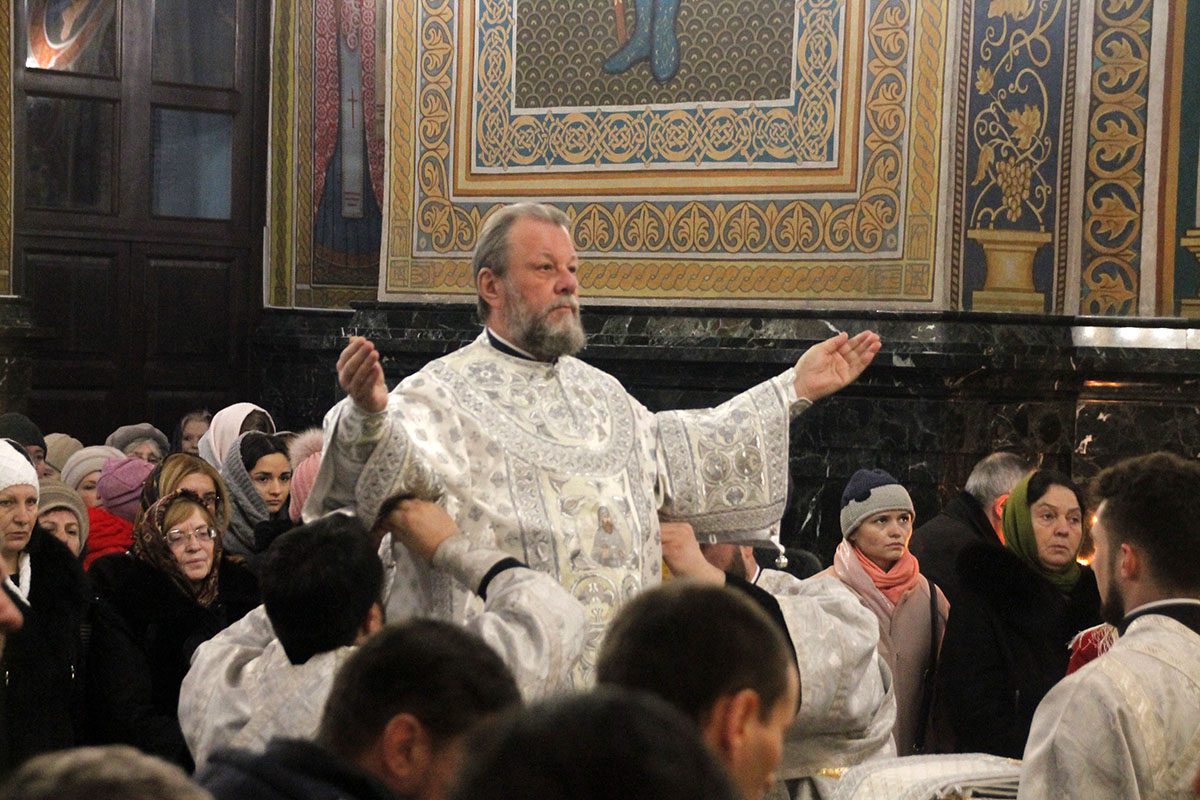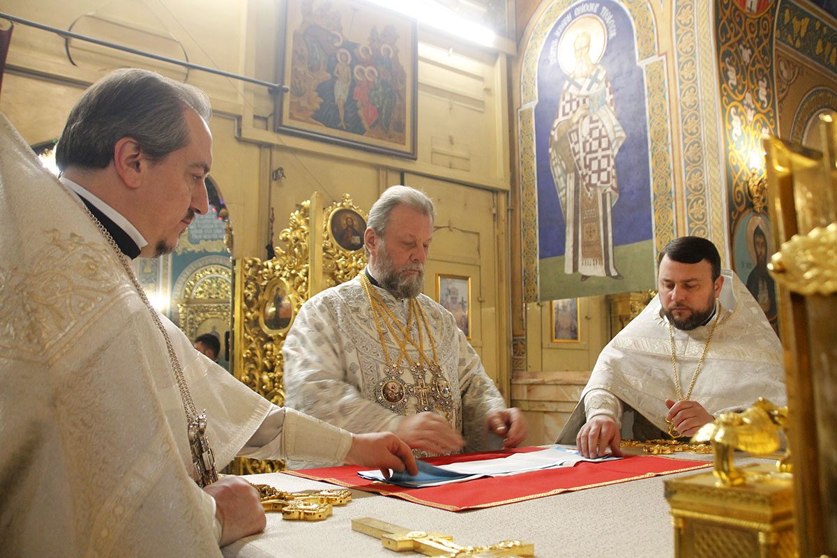 În dimineața zilei, Înaltpreasfinția Sa a fost întâmpinat călduros de către soborul de preoți ai Catedralei Mitropolitane în frunte cu eclesiarhul Catedralei, Prot. mitr. Vadim Cheibaș, Secretar mitropolitan.