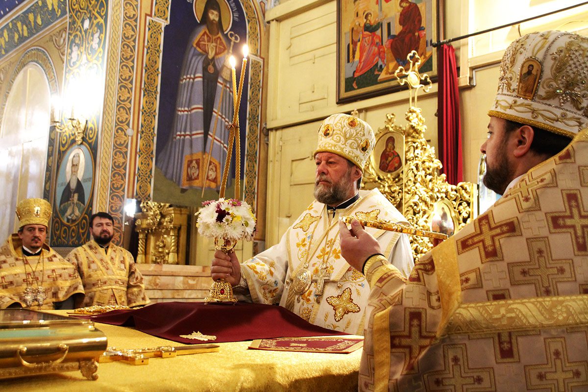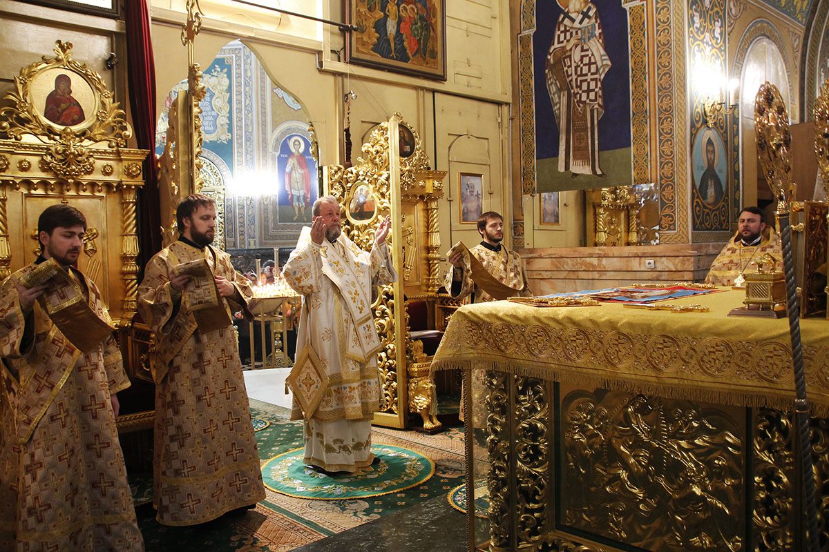 În dimineața zilei, Înaltpreasfinția Sa a fost întâmpinat călduros de către soborul de preoți ai Catedralei Mitropolitane în frunte cu chelarul Catedralei, Prot. mitr. Vadim Cheibaș, Secretar Mitropolitan.