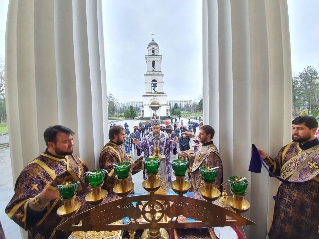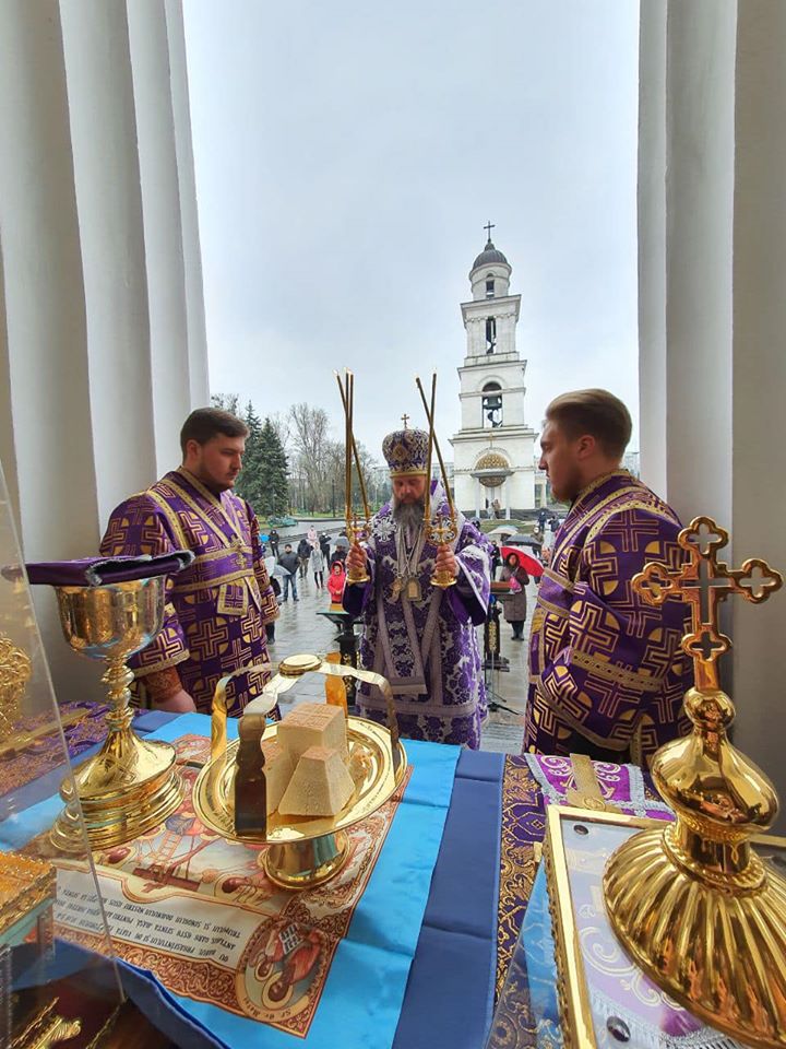 În Duminica a treia a Postului Mare, când Biserica prăznuiește închinarea cinstitei şi de viaţă făcătoarei Cruci, Preasfințitul Siluan, Episcop de Orhei, Vicar mitropolitan a săvârșit Sfânta și Dumnezeiasca Liturghie în fața Catedralei mitropolitane „Nașterea Domnului” din Chișinău.
