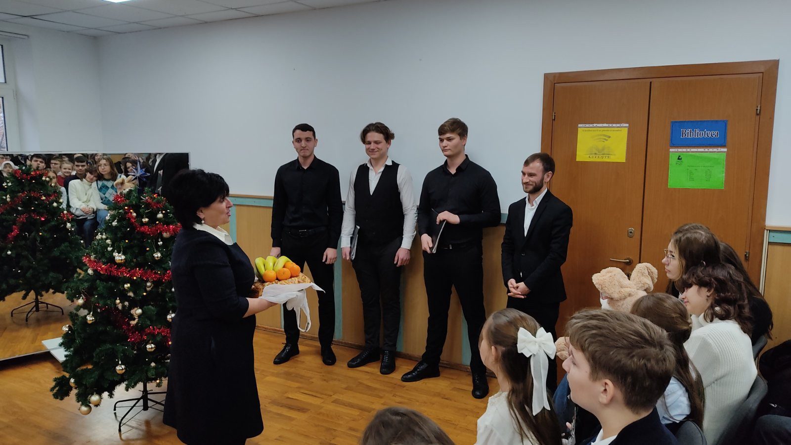 De asemenea, elevii Liceului au colectat și mai multe cutii cu produse alimentare pentru familiile defavorizate din Capitală, care vor fi distribuite în ajunul Praznicului Nașterii Domnului. La evenimentul caritabil a fost prezent și Grupul coral „Gnosis” de la biserica „Sf. Dimitrie cel Nou” din Capitală, condus de Dl Serghei Crudu, care au susținut un mic recital de colinde, reușind să transmită bucuria și măreția sărbătorilor de iarnă atât Loredanei, elevilor, profesorilor și părinților prezenți.