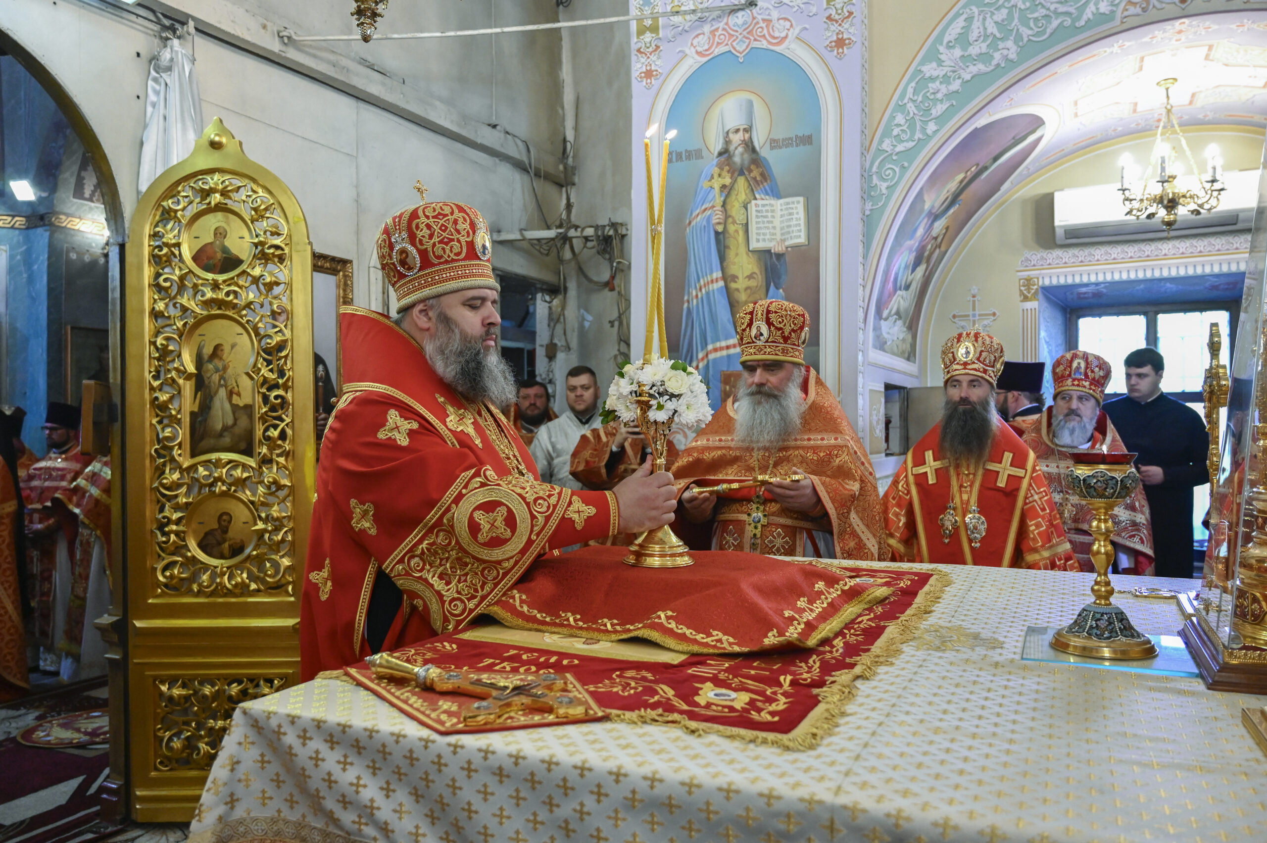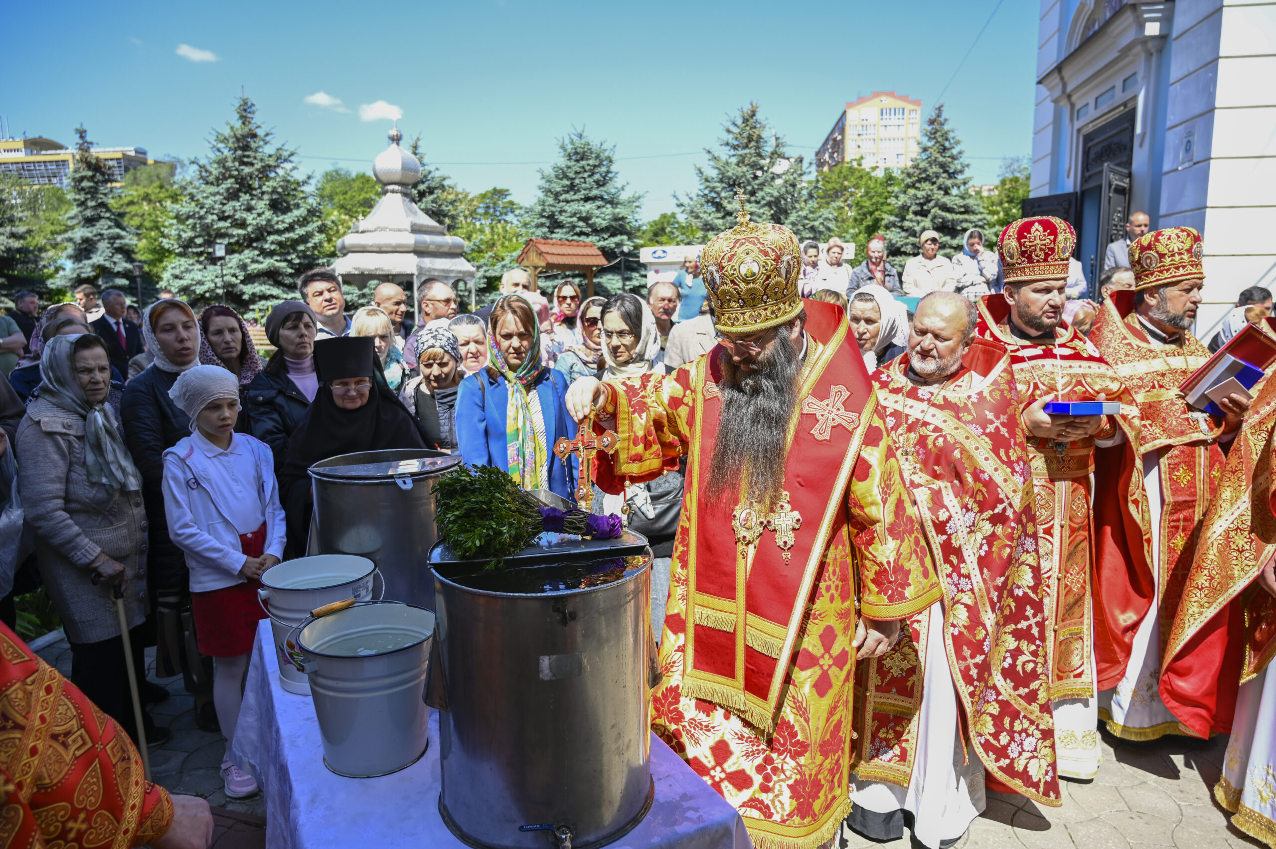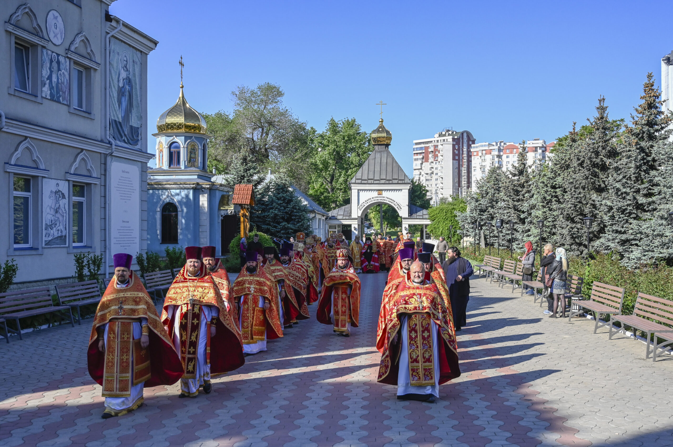 Dumnezeiasca Liturghie a fost condusă de Înaltpreasfințitul Anatolie, arhiepiscop de Cahul și Comrat, de asemenea, participând Înaltpreasfințitul Marchel, arhiepiscop de Bălți și Fălești, episcopii-vicari: Preasfințitul Ioan, episcopul Sorocii, Preasfințitul Siluan, episcopul Orheiului, Preasfintitul Filaret, episcop de Căpriana, Preasfintitul Nicolae, episcop de Ceadîr-Lunga, vicarul Eparhiei de Cahul și Comrat, Preasfințitul Patrocl, episcop de Dondușeni, vicarul Eparhiei de Edineț și Briceni, un sobor de preoți și diaconi, obștea monahală, precum și credincioșii veniți la rugăciune.